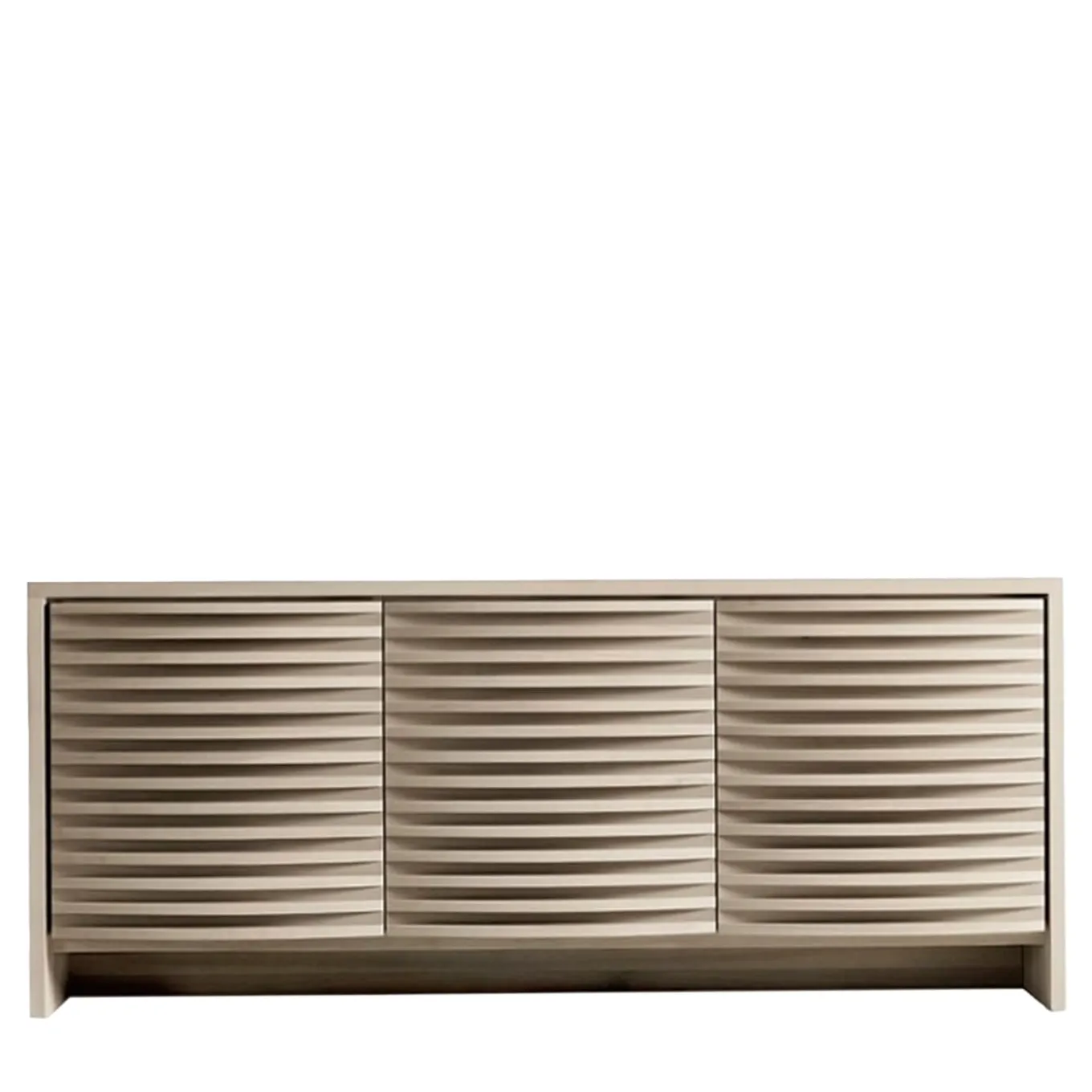 Con un caratteristico effetto tridimensionale, questa credenza in legno massiccio si distingue per la sua estetica unica. Qualità artigianale, design classico e linee contemporanee si fondono in un mobile senza tempo adatto a qualsiasi ambiente.