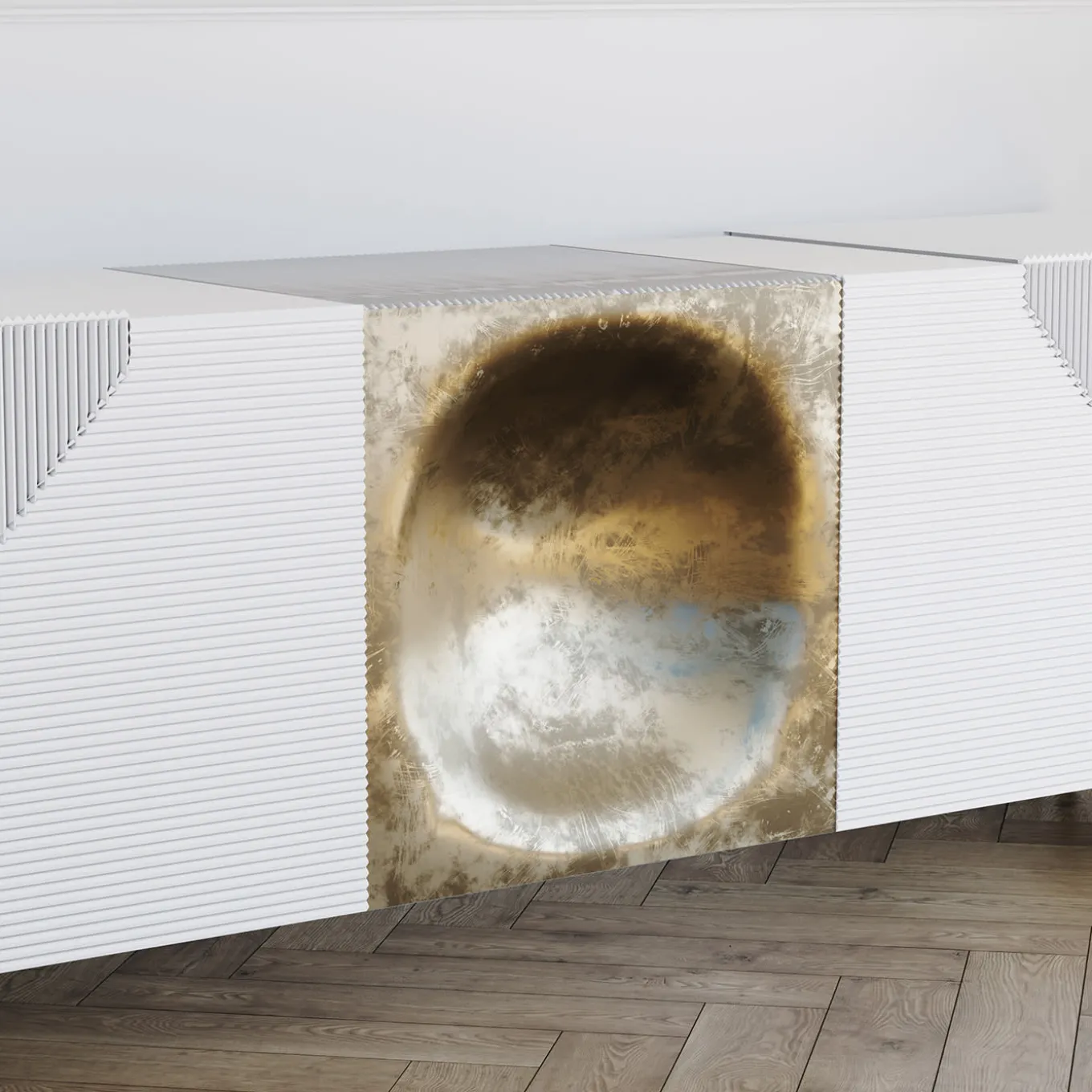 Linee pure che tagliano i volumi si intersecano con la credenza, il design di Riga incontra l’architettura. Questo prodotto è sapientemente rifinito con una meticolosa sartoria. Laccato opaco a mano. Disegnata da Paolo Ciacci.