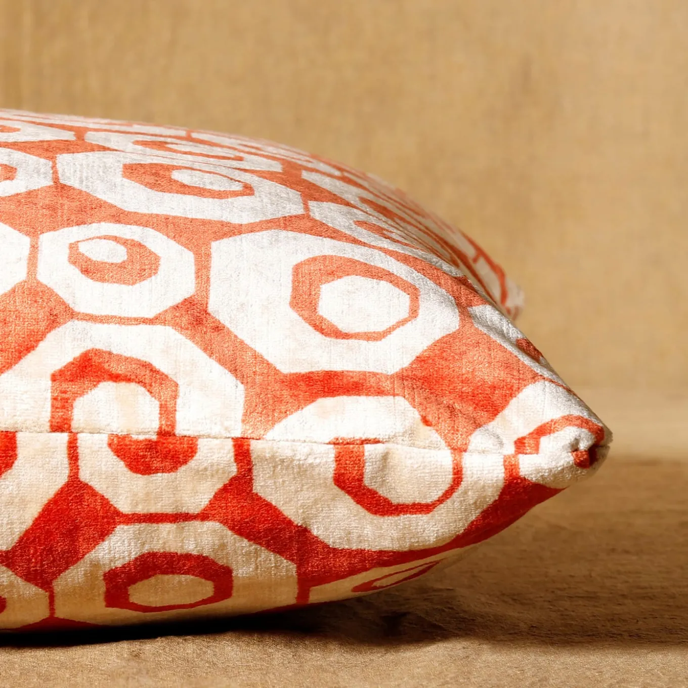 Il motivo Loto richiama il dolce frutto del loto del mito che fece perdere la memoria agli uomini di Ulisse. Lo stesso accade alle fibre di cotone e poliestere viscosa del cuscino, che intrecciate insieme cadono nella dimenticanza, non permettendo la perfetta penetrazione del colore.