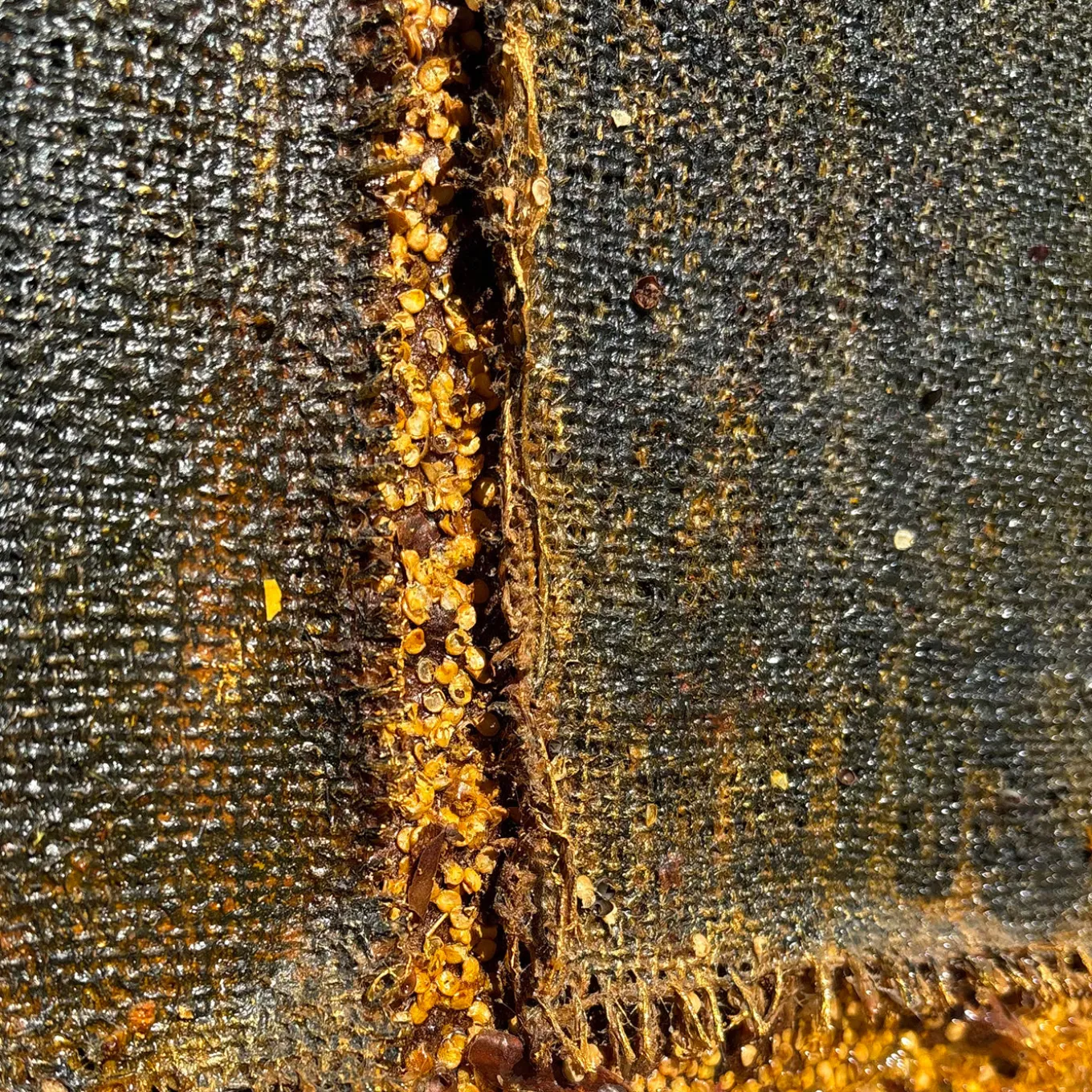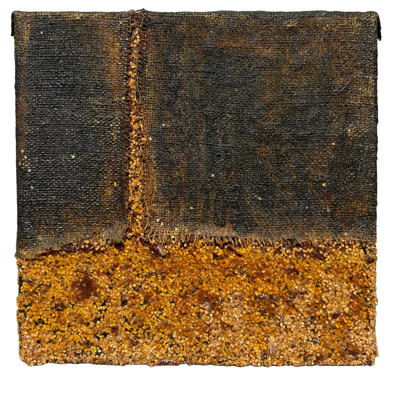 Burning Heart è un’opera d’arte astratta su tela realizzata con tecniche miste, tra cui peperoncino, fibra di juta e resina. La composizione presenta due metà testurizzate in toni scuri e terrosi, evocando tensione e trasformazione attraverso materiali stratificati. Quest’opera evocativa cattura i contrasti tra fiamma e silenzio, incarnando resilienza e emozione grezza con la sua ricca superficie tattile e gli elementi profondi e luminosi. È un pezzo unico.