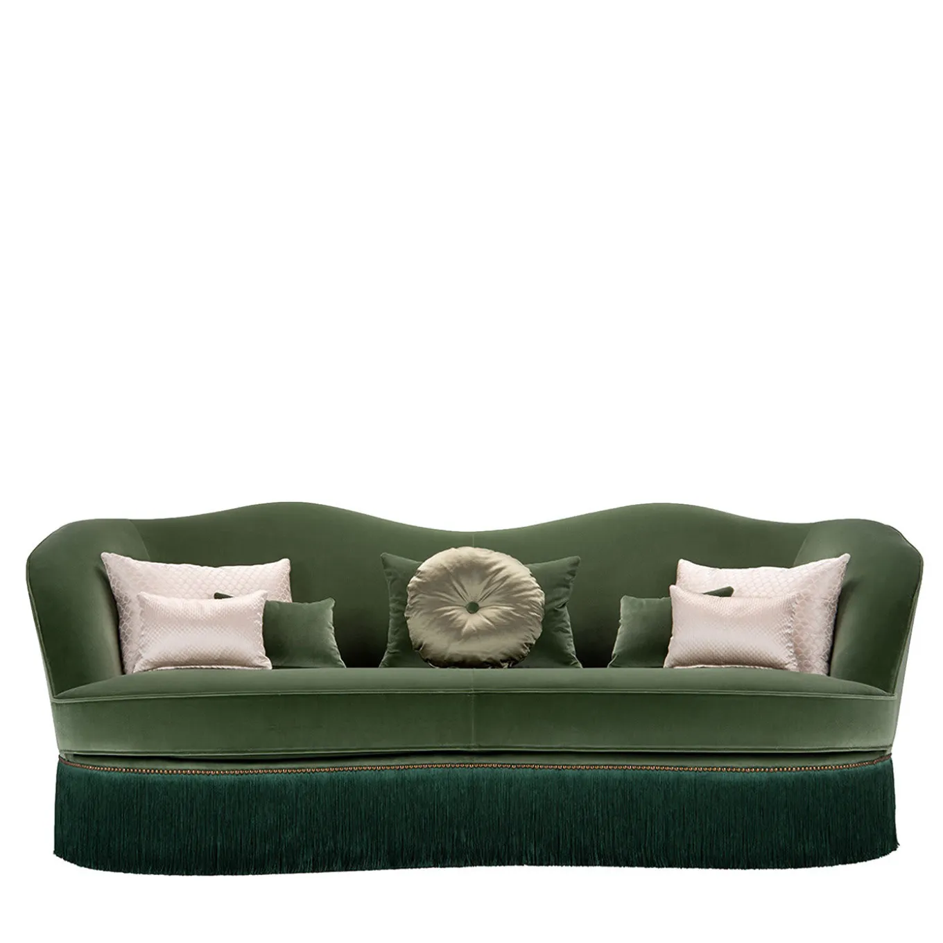 Questo sontuoso divano a tre posti, che prende il nome dalla dea greca e madre di Afrodite, si distingue per la sua sartorialità, evidente nelle sottili frange che ornano la base. Un disegno ondulato contraddistingue lo schienale, il cui profilo si inclina alle estremità per dare forma ai braccioli che affiancano la seduta extra-fondente. Con un rivestimento in velluto verde bosco, il divano viene consegnato con cuscini coordinati. Si prega di informarsi presso il Concierge sulla variante letto.