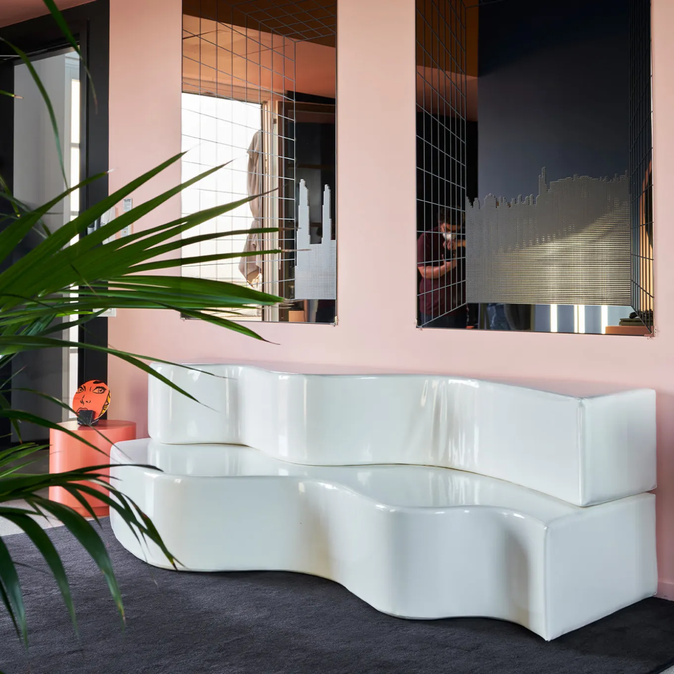Progetto iconico del 1967 del gruppo radicale fiorentino Archizoom, questo pezzo audace e maestoso è il primo divano nella storia del design a non avere una struttura convenzionale. Composto da due elementi ondulati ricavati da un unico pezzo di poliuretano che possono essere facilmente disposti in diverse configurazioni per diventare una chaise longue o un daybed, è rivestito da un tessuto bianco lucido rivestito in PVC che ne esalta l’allure Pop. Disponibile anche in rosso o nero.