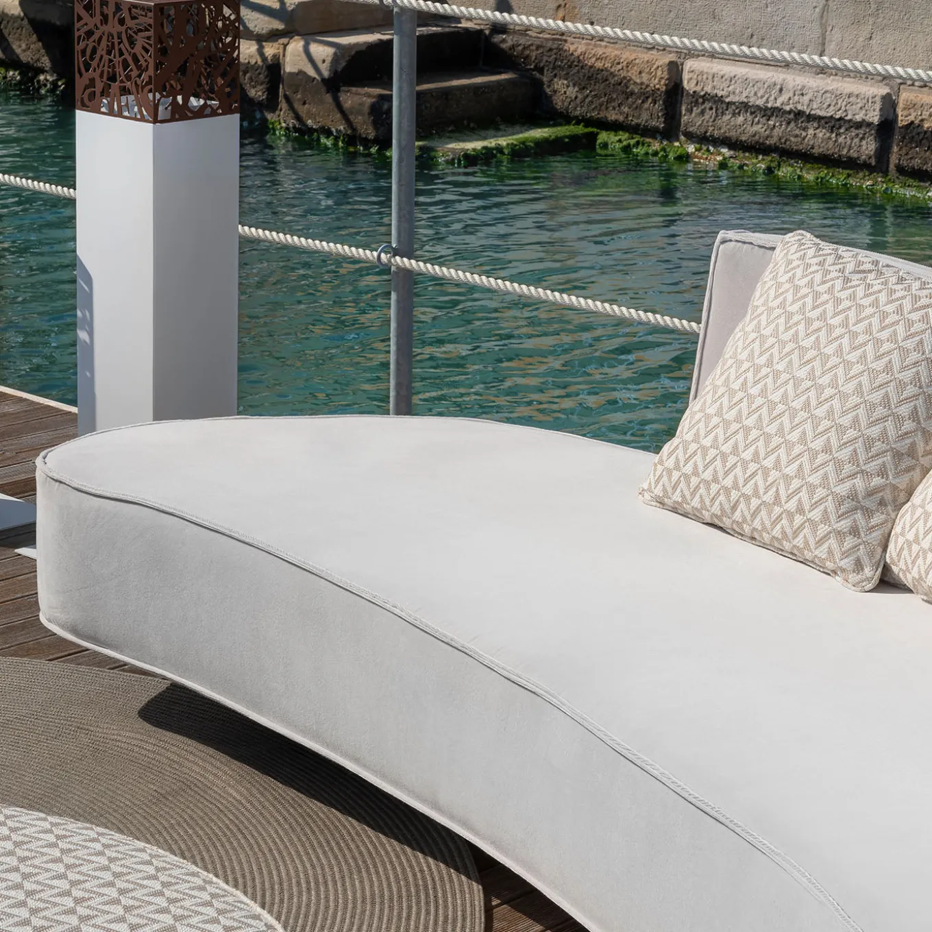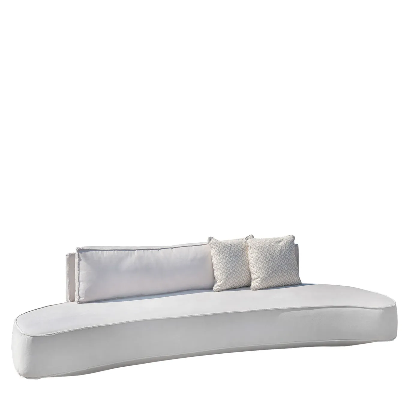 Divano da esterno Cayman Curvo in tessuto bianco con cuscini