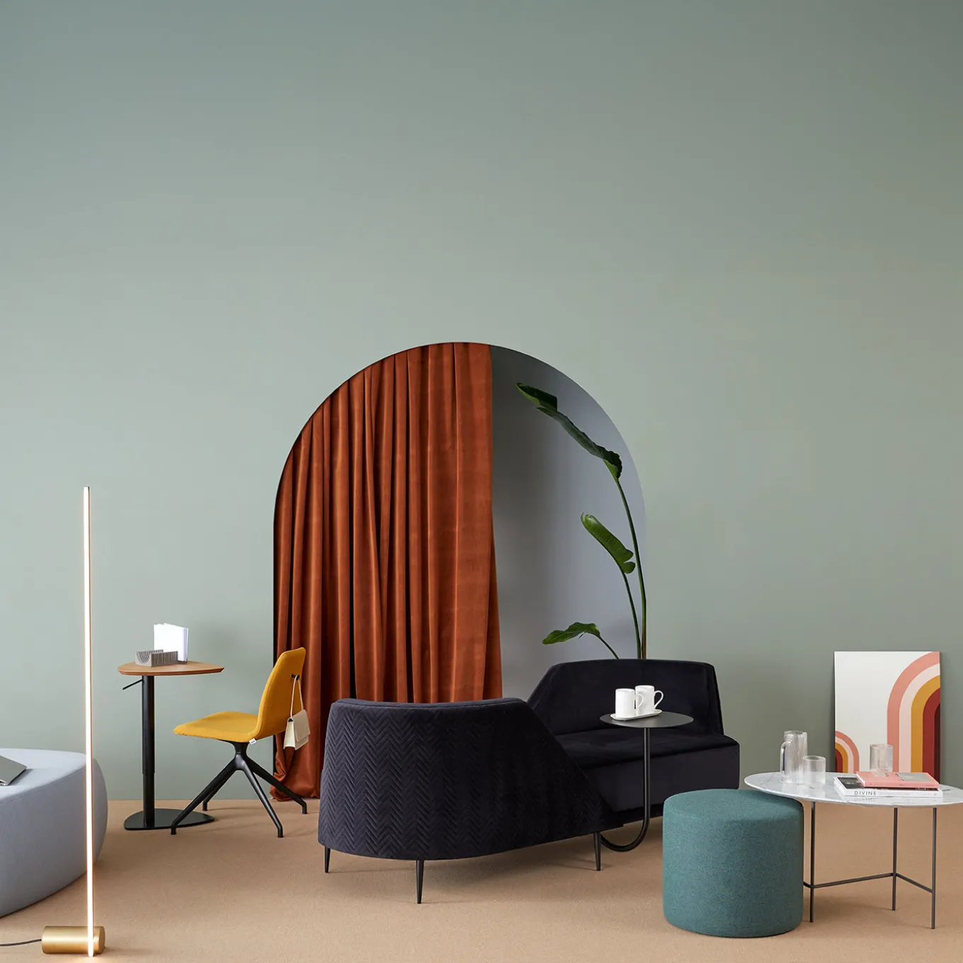 Questo divano imbottito vis-à-vis è caratterizzato da piedi in alluminio verniciato in nero opaco. Eleganza e funzionalità per ogni salotto.