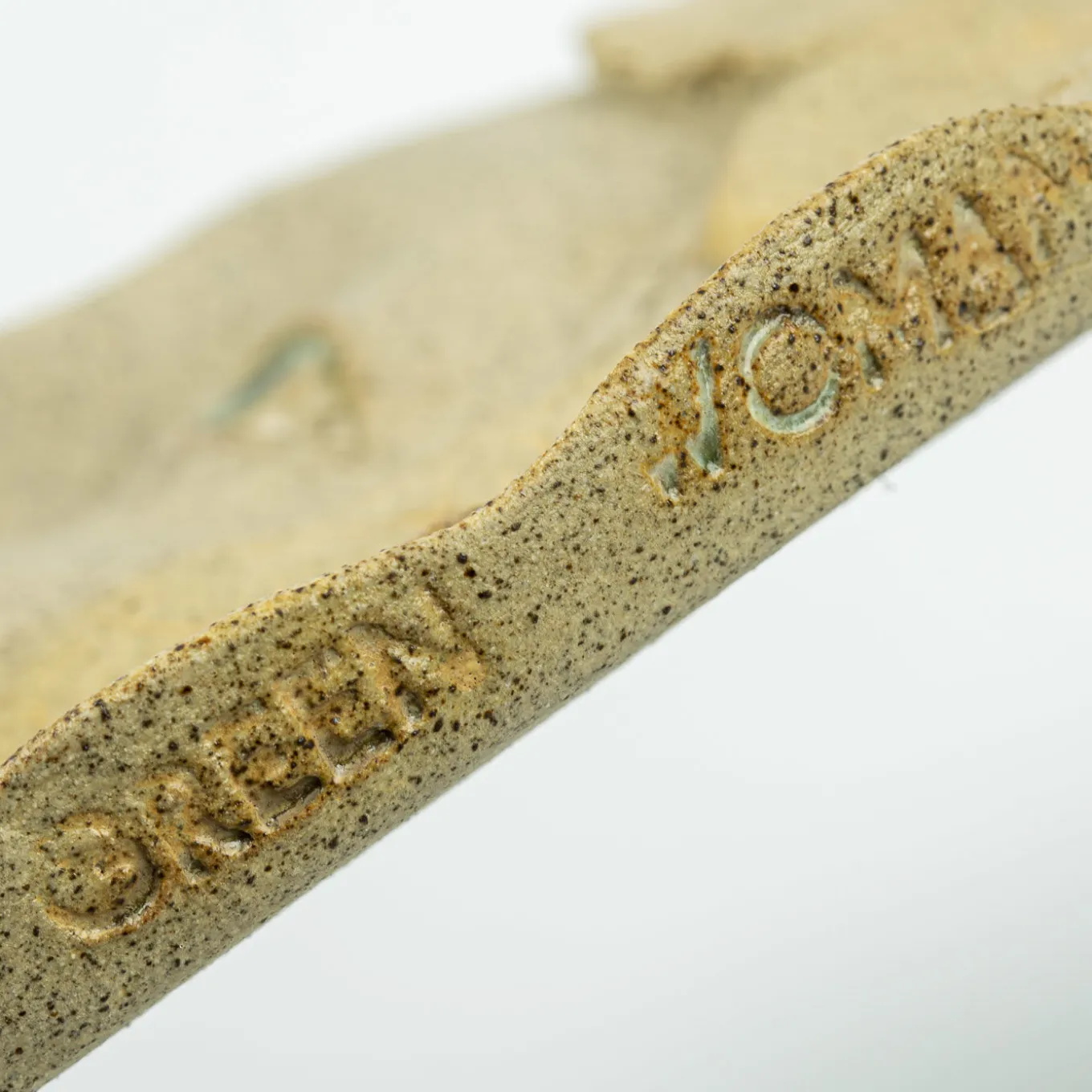 Rilievo in gres ispirato al mito dell’Uomo Verde. Parzialmente smaltato. Da appendere come un quadro o da fissare alla parete con cemento o colla. Adatto anche per ambienti esterni.