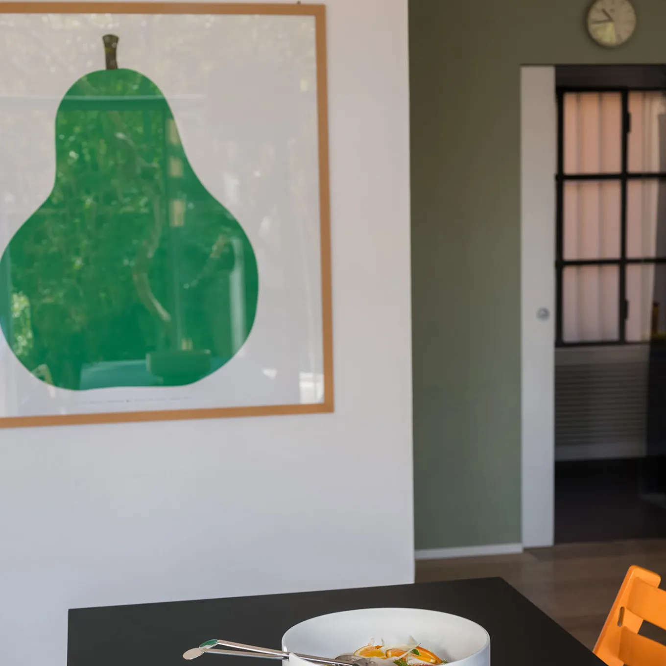 Questa elegante serigrafia della Collezione Serie della Natura raffigura la silhouette stilizzata di una pera in un colore verde intenso. La mancanza di dettagli è il risultato di un processo specifico che crea per sottrazione, trasformando l’immagine di una pera nel simbolo di una pera con tutte le associazioni mentali che può evocare nella mente dell’osservatore.