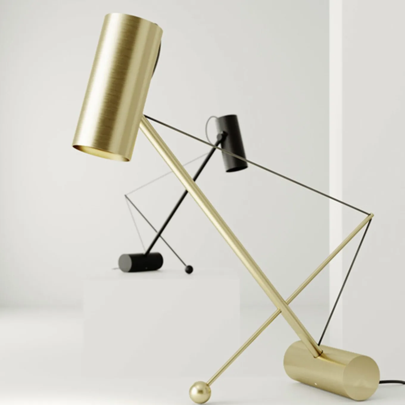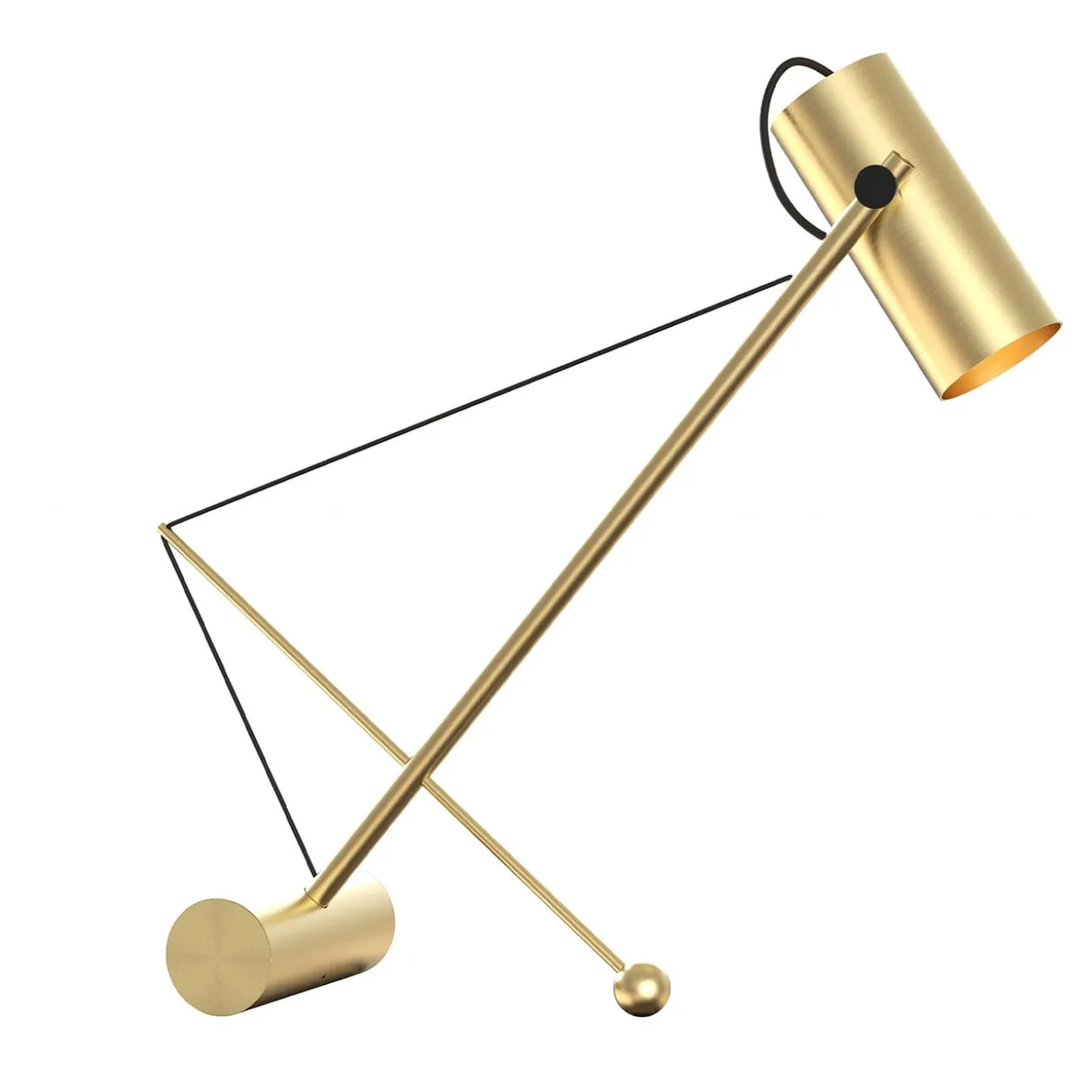 Quando l’arte contemporanea incontra il design minimalista, nascono pezzi d’arredamento unici e pratici. Poggiata su una solida base cilindrica in acciaio, questa suggestiva lampada da tavolo è dotata di un meccanismo di regolazione per cui l’elemento perpendicolare allo stelo può cambiare posizione lungo la stretta filettatura posteriore, riducendo o aumentando la distanza del paralume dall’oggetto illuminato.