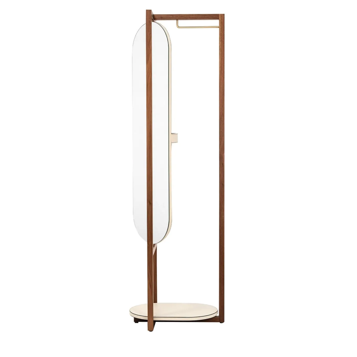 Elena, il nuovo portavalori pensato appositamente per lei. Dopo lo stile Achille, siamo lieti di arricchire la nostra collezione con una versione più femminile. L’elegante struttura in legno di noce è ora più alta e impreziosita da uno specchio girevole rifinito sul retro da un rivestimento in pelle e da un vassoio portagioie per riporre i piccoli gioielli. Perfetto per gli abiti da sera eleganti, il fondo è completato da una base in pelle che dà risalto ai tacchi. Preparatevi per il vostro prossimo gala in modo unico.