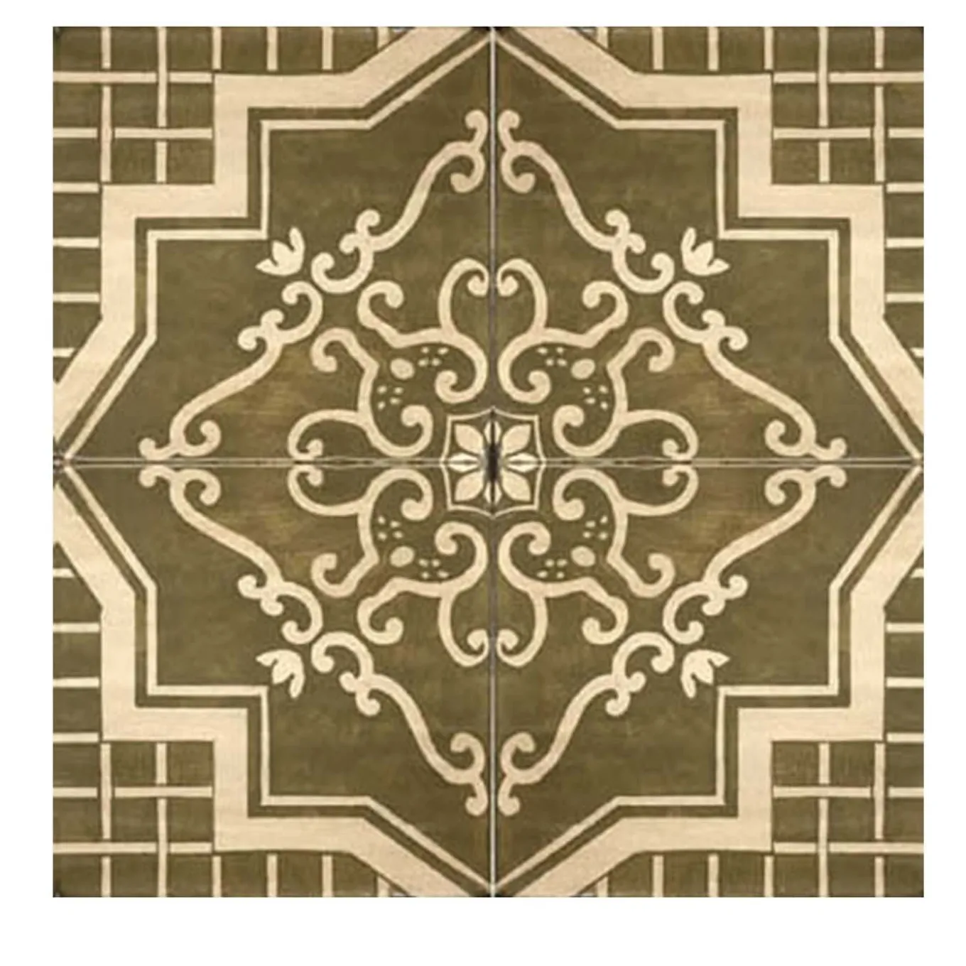 Questo accattivante set di piastrelle fonde linee chiare e tradizione artigianale siciliana. Interamente dipinte e smaltate a mano, queste quattro piastrelle rivelano un disegno intricato che presenta motivi a forma di fronda su uno sfondo marrone con una sinuosa cornice geometrica a doppio bordo. La griglia sottostante aggiunge un tocco di linearità che esalta la simmetria del pezzo. Queste piastrelle daranno un tocco elegante a un bagno o a una cucina monocromatici o postmoderni. Si consiglia di montarle con una stuccatura minima per una finitura senza giunture.