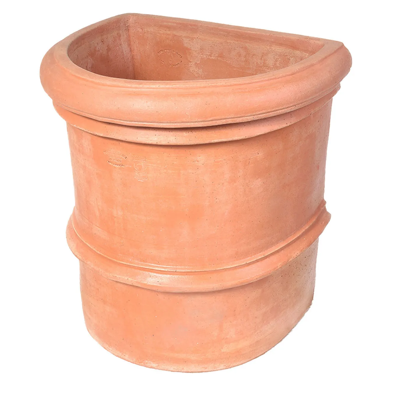 Questa fioriera unica è realizzata a mano in terracotta resistente al gelo secondo le tecniche tradizionali della ceramica dell’Impruneta, un rinomato distretto vicino a Firenze. Caratterizzata da fasce di corda lungo il centro e il bordo superiore, la sua silhouette cilindrica è interrotta da un lato piatto da appoggiare alle pareti, perfetto per ospitare arbusti o fiori. Il marchio di qualità CAT è apposto su ogni pezzo.