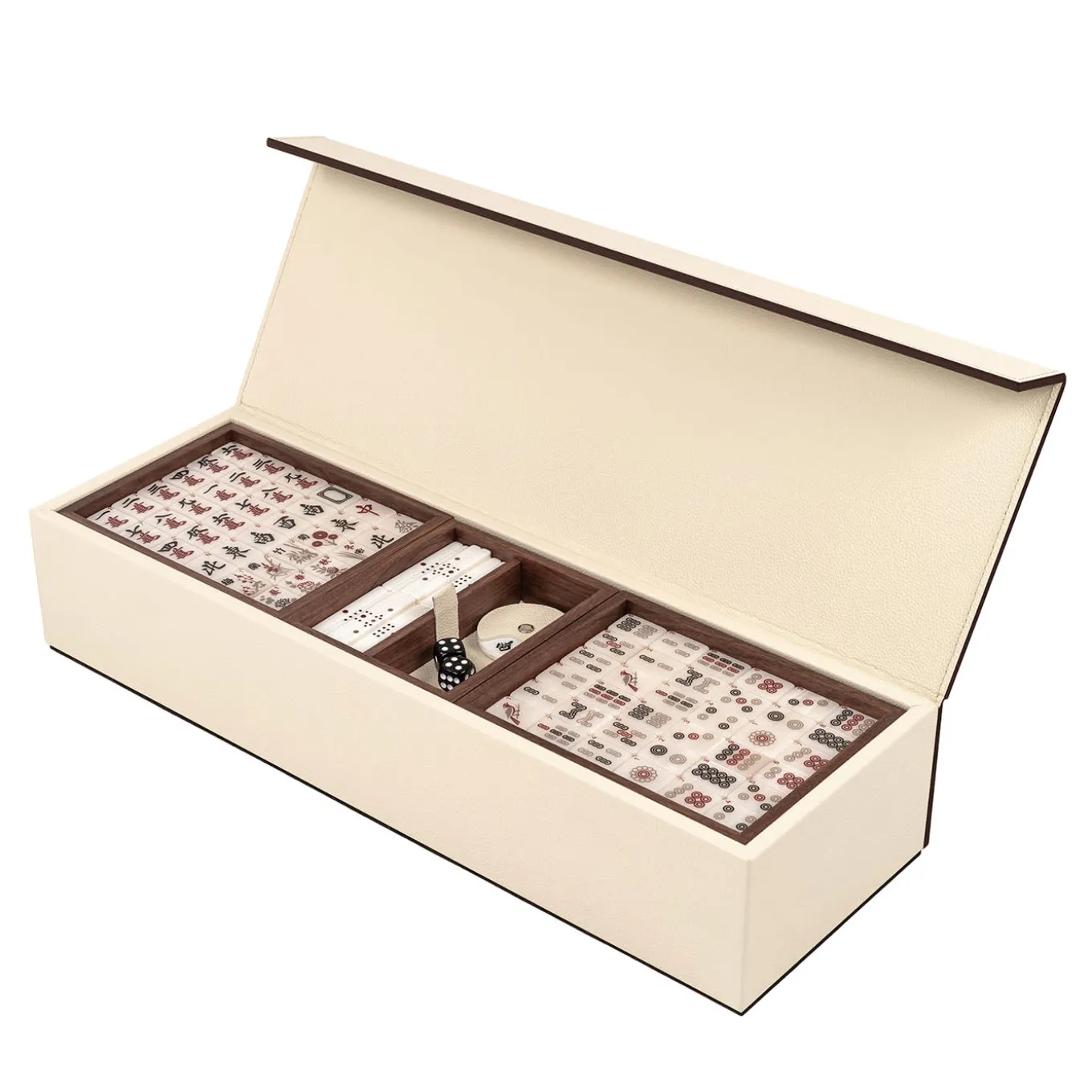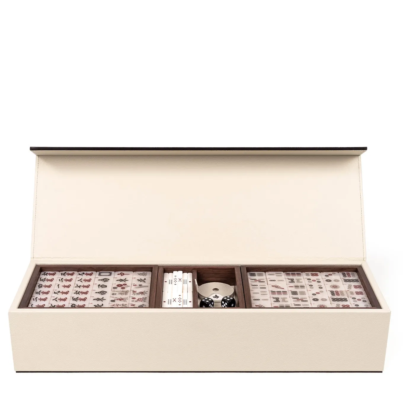 Rivisitazione contemporanea di un classico senza tempo, il gioco da tavolo Mahjong di Pinetti è un prezioso restyling di uno dei giochi più popolari al mondo. Realizzato a mano in legno di noce, è dotato di un coperchio con calamita e di un rivestimento in pelle Cairo color crema di prima qualità. Il set di gioco comprende 144 tessere perlate, 88 bastoni, quattro rastrelliere e un indicatore girevole. Per ulteriori dettagli, consultare il Concierge.