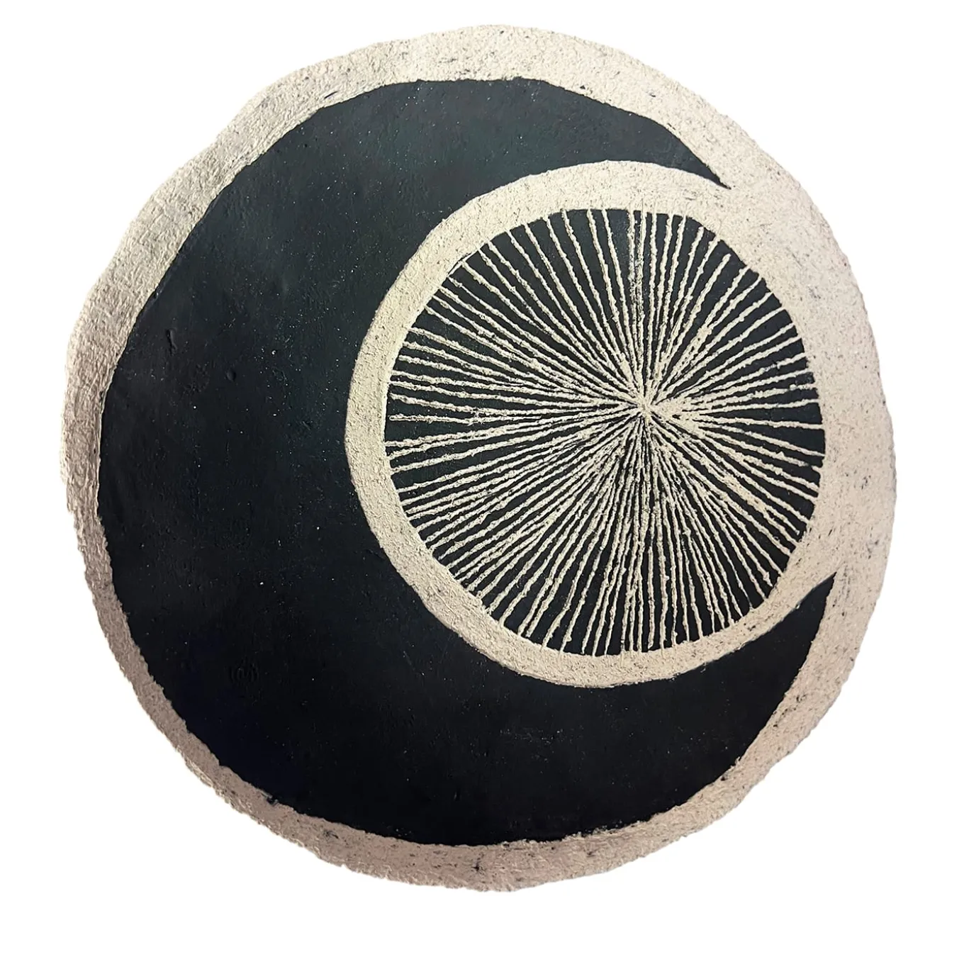 Un’incantevole incisione circolare si irradia dal centro, formando un intricato motivo a raggiera sulla ceramica nera profonda. Questa ciotola, dipinta e intagliata a mano, è scultorea e funzionale: può servire come accento decorativo o come raffinato contenitore per gli oggetti di uso quotidiano. Il suo contrasto materico e le imperfezioni fatte a mano celebrano la bellezza dell’artigianato, rendendola un’aggiunta elegante e unica a qualsiasi interno curato.