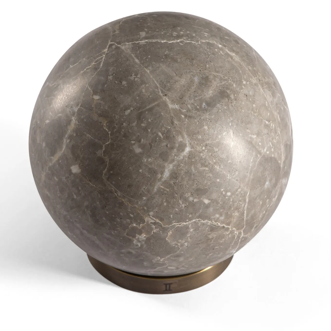 L’associazione tra il segno zodiacale dei Gemelli e il pianeta Mercurio è splendidamente celebrata in questo fermacarte, che emana il fascino di un autentico oggetto d’arte. La sfera in marmo Gris du Marais – elegante nella sua gamma di venature beige e bianche che si stagliano sullo sfondo grigio – può ruotare sulla base in ottone per simulare il movimento dei corpi celesti. Può essere abbinata ad altri pezzi della Gravity Zodiac Collection per un’immagine coesa e puramente decorativa.