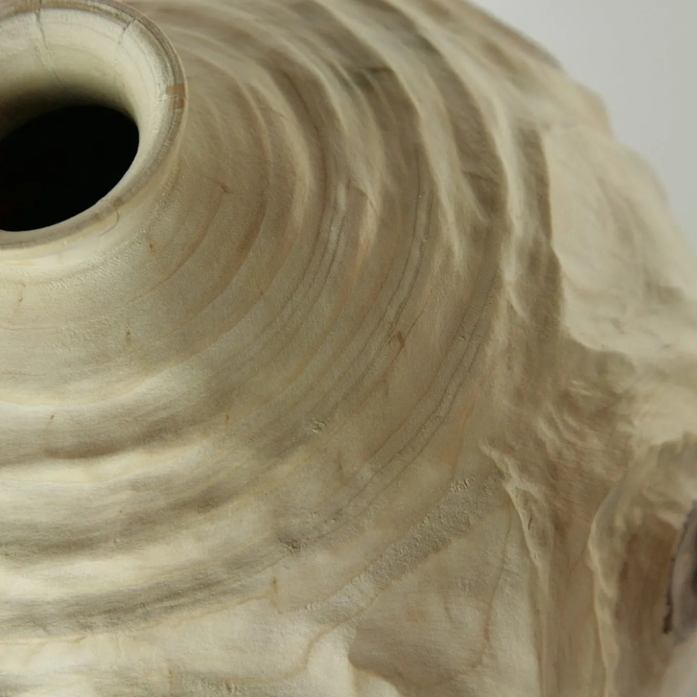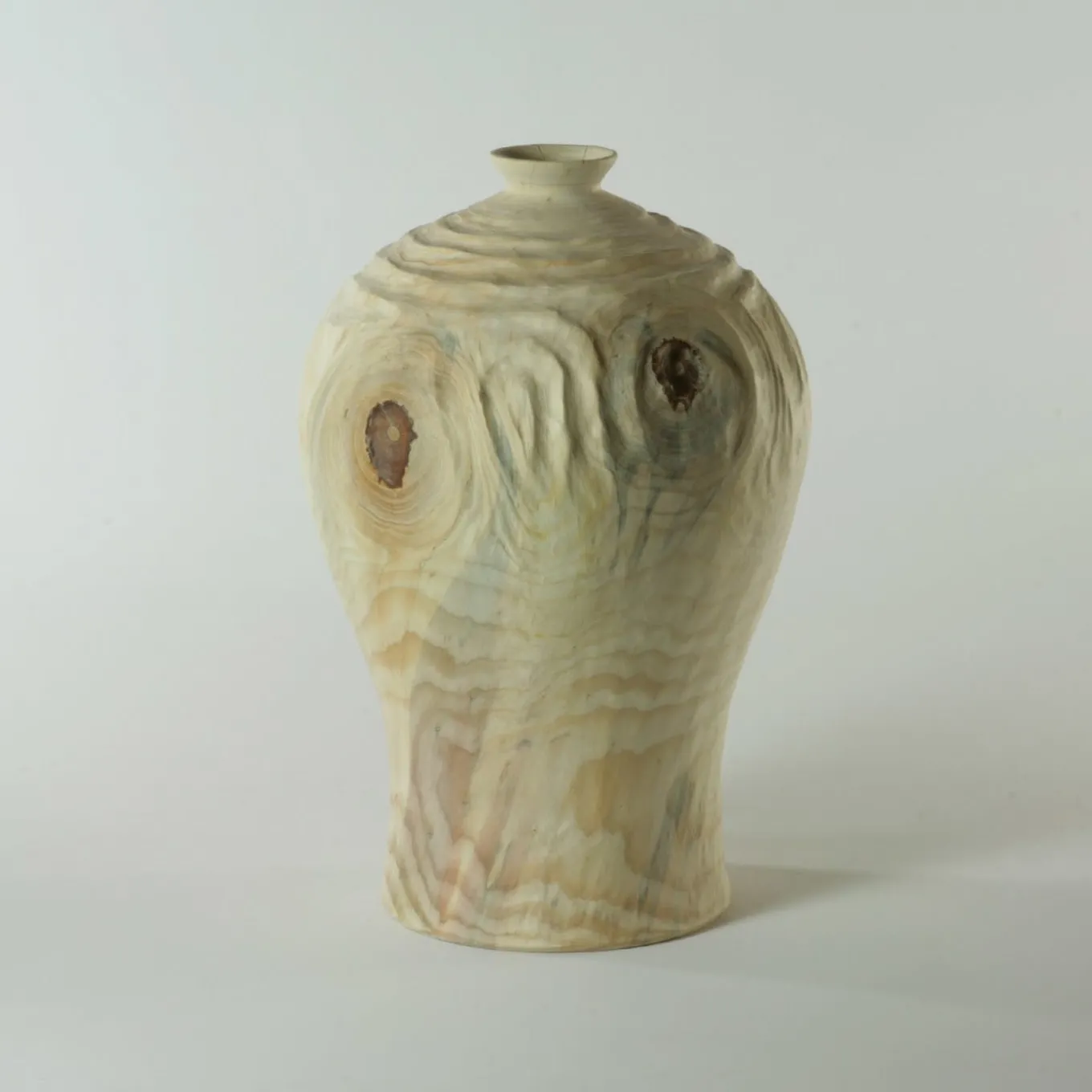 Questo singolare vaso faticosamente intagliato a mano da un unico blocco di legno di araucaria evoca le eleganti atmosfere dell’antica Corea con la sua forma tradizionale. Le sue particolari volute e venature sono enfatizzate dalla tecnica Groove FTG (acronimo di Follow The Grain), in cui le scanalature seguono le venature naturali, completando il disegno.