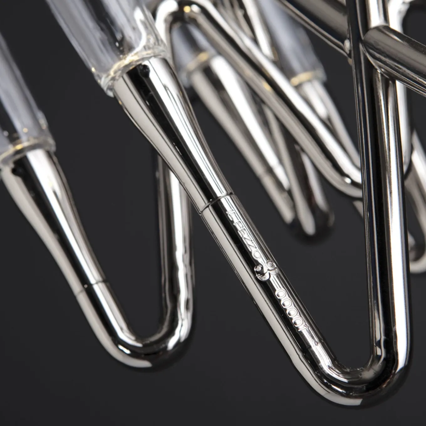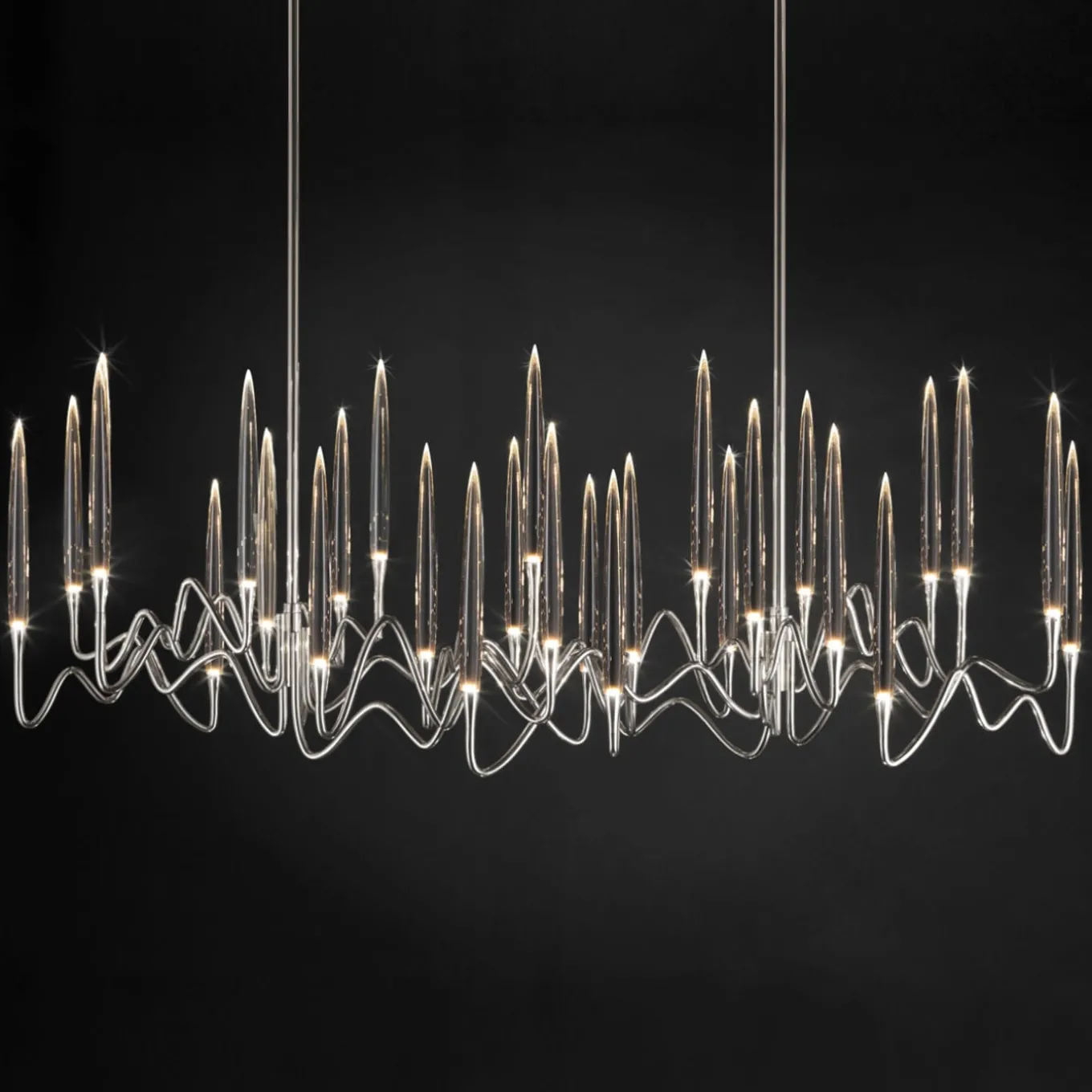 Il Pezzo 3 Lampadario Lungo si ispira alla calligrafia araba e al classico candelabro. La sua struttura in ottone forgiato a mano sostiene eleganti “candele” in cristallo massiccio, realizzate con l’esperienza artigianale toscana. L’avanzata tecnologia LED offre una luce sofisticata e romantica. Ogni lampada include il caratteristico “Pezzo Mancante”, un cilindro di ottone con un numero di serie unico, che garantisce autenticità e individualità. Personalizzabile nelle dimensioni e nelle finiture, Il Pezzo 3 fonde perfettamente la tradizione con l’eleganza moderna.