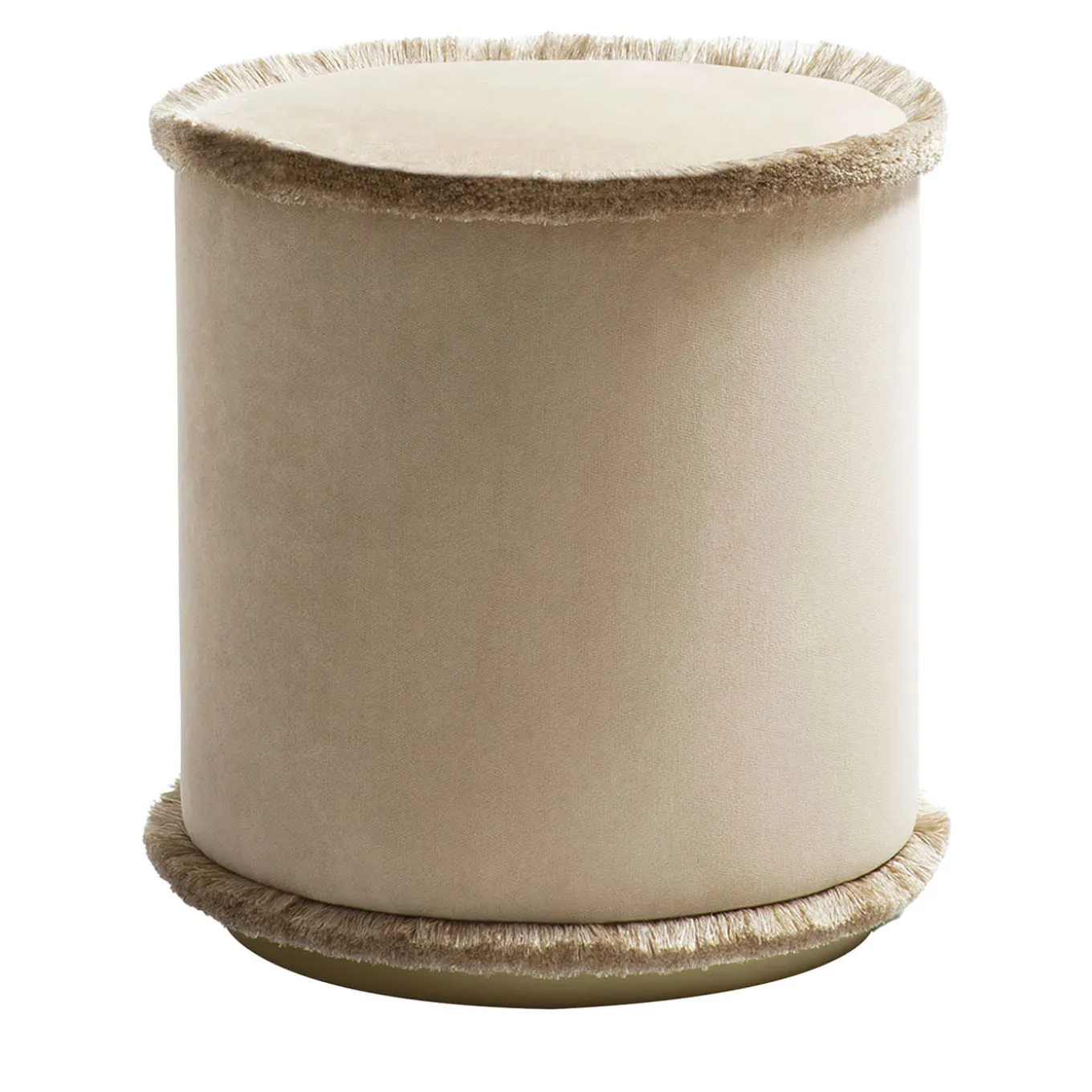 Disponibile in delicate tonalit�, qui in beige, IL Pouf della collezione Tone on Tone arricchisce ogni ambiente con la sua estetica compatta e sofisticata. La struttura cilindrica in legno massiccio � rivestita in morbido velluto e avvolta da frange spesse e perfettamente rifinite, per un effetto accogliente e scenografico. L�imbottitura generosa e la base in ottone satinato completano questo pezzo di design dallo charme discreto ma distintivo.