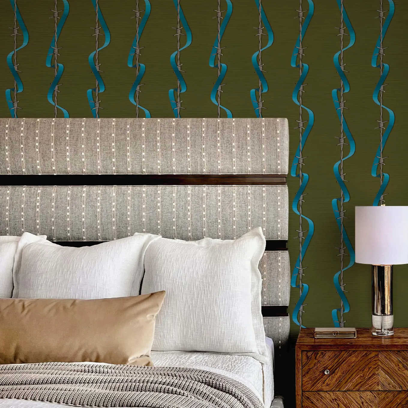 Contrapponendo il filo spinato alla morbidezza di un nastro di seta, Gjoen crea una giustapposizione di due elementi che si intrecciano. Amore contro odio, bene contro male. La storia di bellezza e dolore ci mostra l’infinito intreccio dei due elementi. I due elementi creano una nuova alleanza di speranza e di incertezza.