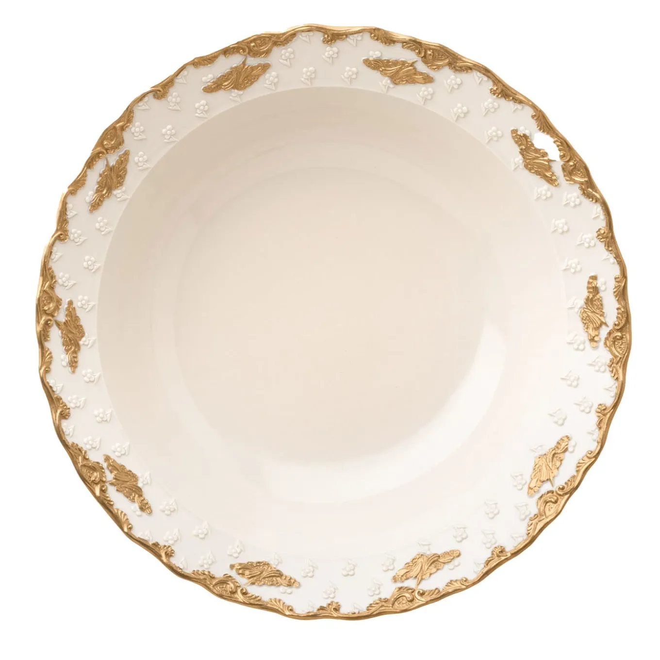 I dettagli ornamentali in oro zecchino conferiscono a questa insalatiera in porcellana la sua caratteristica personalità raffinata e lussuosa. Dai bordi spuntano delicati fiori che creano una trama romantica, contrastata dai dettagli in oro dipinti a mano che delineano anche i bordi. È disponibile anche una versione decorata in platino. Esplorate la Collezione Lucia nel catalogo Artemest.