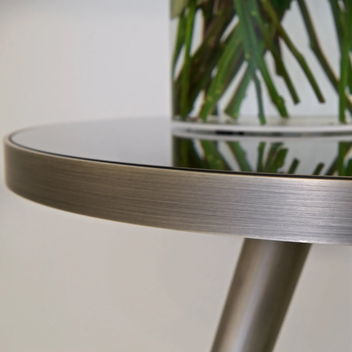 90Questo prezioso set di tre tavolini fa parte della Collezione Jerome, ispirata al fascino del design di metà secolo, realizzata con una squisita maestria artigianale e con materiali di alta qualità. Ogni pezzo è caratterizzato da un piano rotondo in vetro con finitura laccata nera, montato in una struttura in ottone satinato, utilizzata anche per realizzare le tre gambe oblique che sostengono ogni pezzo. Le misure sono: Ø56 x H45 cm, Ø56 x H56 cm e Ø80 x H66 cm.
