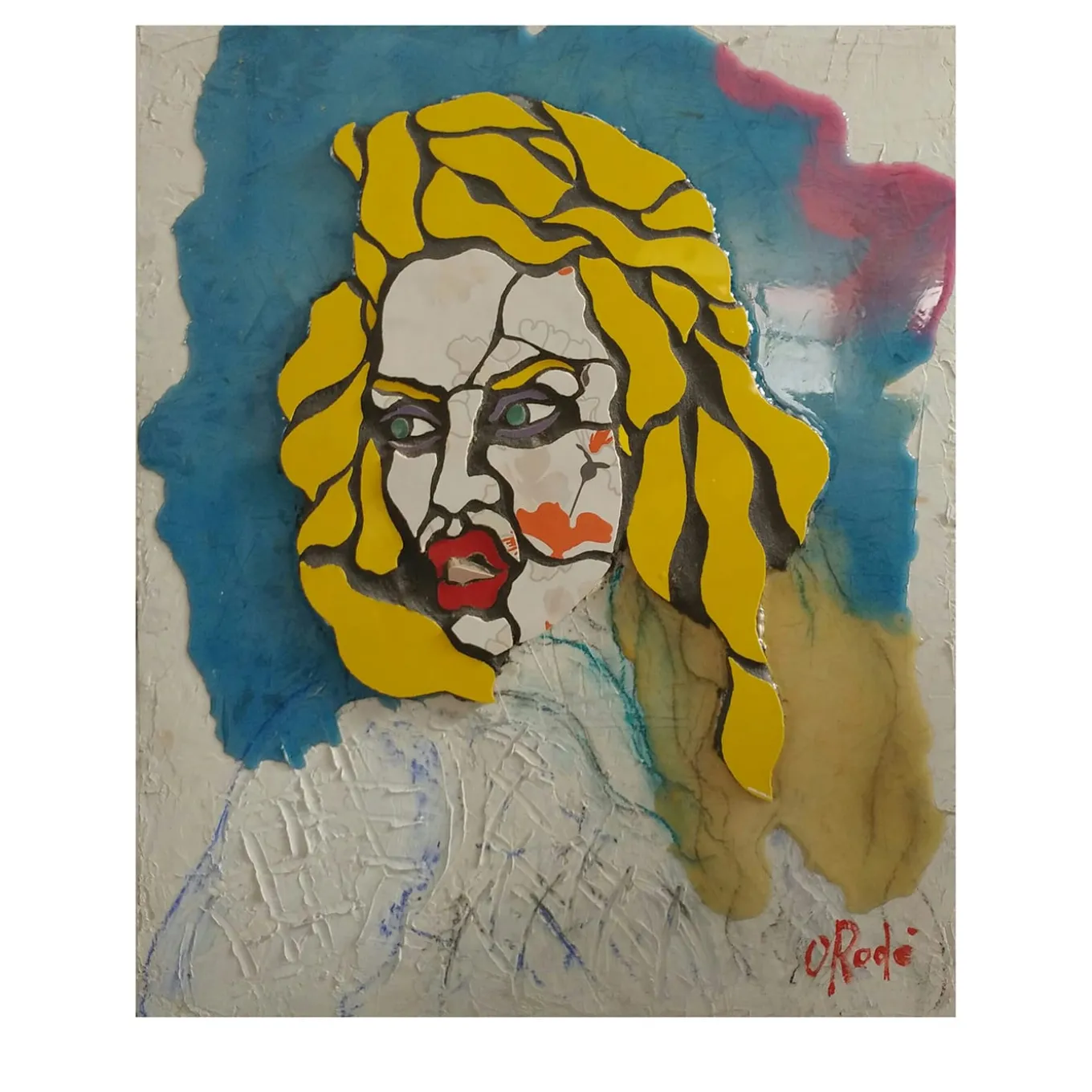 Squisitamente contemporaneo, questo mosaico combina piastrelle di ceramica e resina con pasta di cemento per delineare l’eccentrico ritratto di una donna bionda con la lingua di fuori. Tonalità vibranti e tecniche miste danno vita a un risultato di grande fascino artistico e di preziosa unicità. Un certificato di autenticità firmato dall’artista è incluso nell’acquisto.