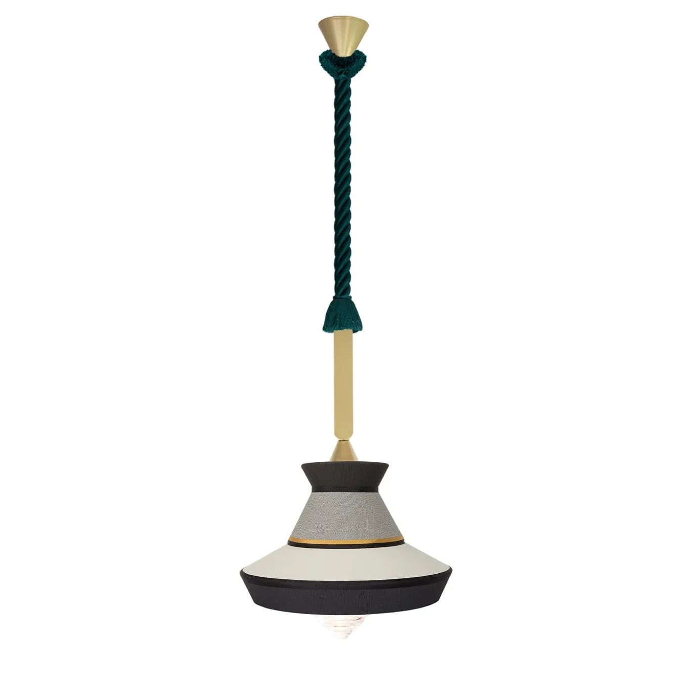 Calypso outdoor è un prodotto con grado di protezione IP65, quindi un vero e proprio Outdoor. I tessuti impermeabili e ignifughi sono adatti a resistere agli agenti atmosferici a temperature particolarmente alte o basse, mantenendo i colori e la qualità artigianale del prodotto. I cavi elettrici passano attraverso la corda marina di colore verde e la struttura portante, che è costituita da un massello levigato laccato oro opaco. La sorgente luminosa è alloggiata all’interno di un cilindro di vetro sigillato per garantire il grado di protezione IP65. Il diffusore è in vetro trasparente. Sorgente luminosa: 1 X E27 T8 Tubolare a LED ip65.