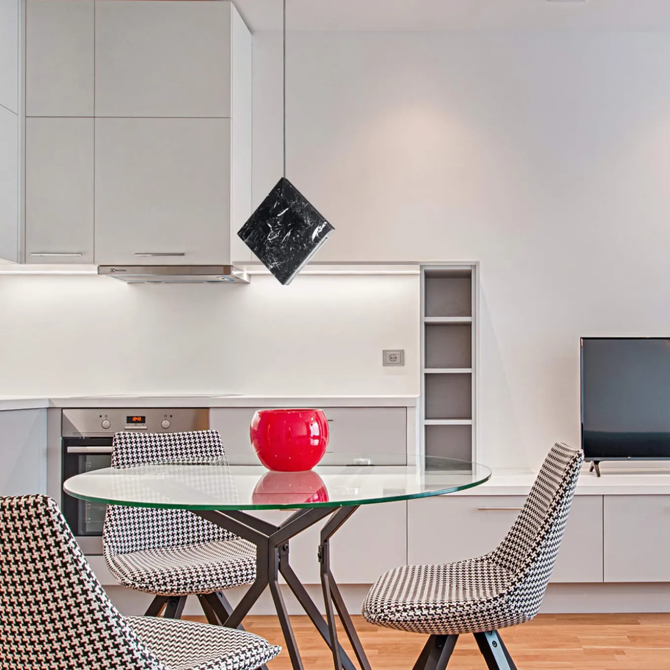 Questa elegante lampada è composta da un sottile quadrato in marmo, da un’unica emissione di luce LED e da una sospensione con fili d’acciaio. È una lampada dalla geometria essenziale che esalta la qualità del marmo lavorato a mano e l’alta tecnologia del sistema di illuminazione a LED. Un oggetto che non invade l’ambiente ma lo arreda con classe, grazie anche a una luce avvolgente e discreta che garantisce un elevato Comfort visivo. Il voltaggio è di 110/220v con LED da 5W e temperatura di luce di 2700K.