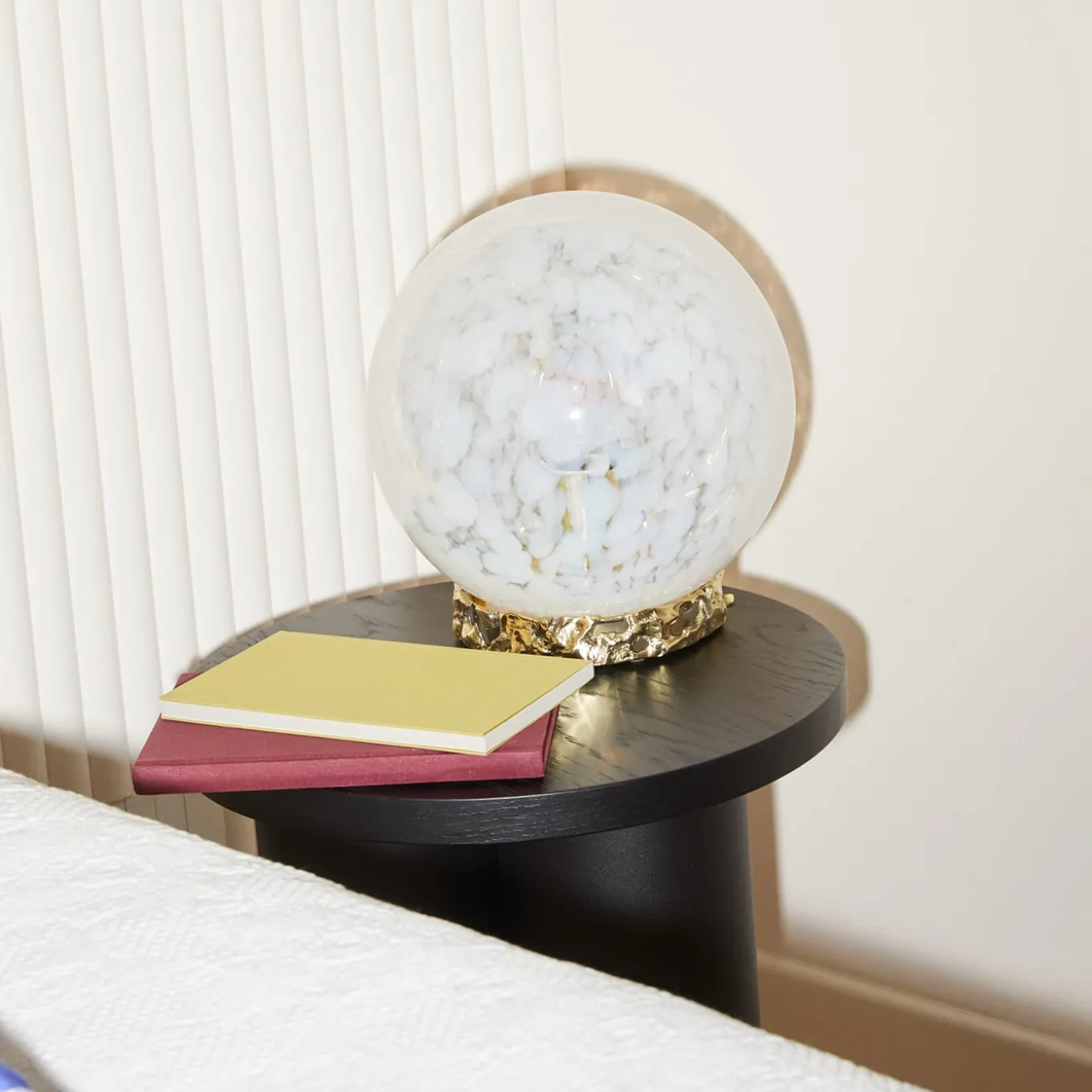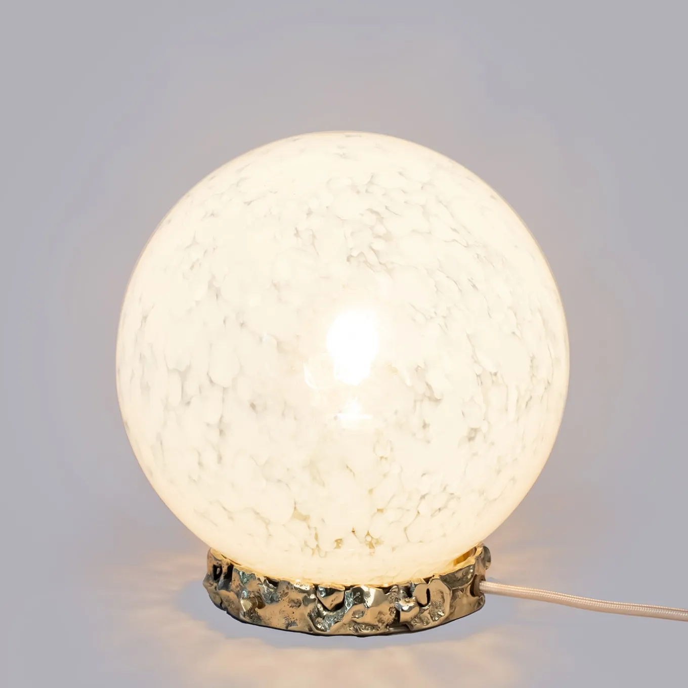 Un pezzo luminoso progettato per valorizzare qualsiasi spazio con un tocco di lusso ed eleganza. La base, realizzata in ottone fuso, presenta una superficie irregolare e strutturata in modo organico, che conferisce un tocco contemporaneo. Questa base moderna contrasta splendidamente con il globo in vetro soffiato di Murano, creato a Venezia con l’identità unica del marchio. Stories of Italy combina le tradizionali tecniche di lavorazione del vetro veneziano con approcci innovativi per reinventare questo materiale antico.