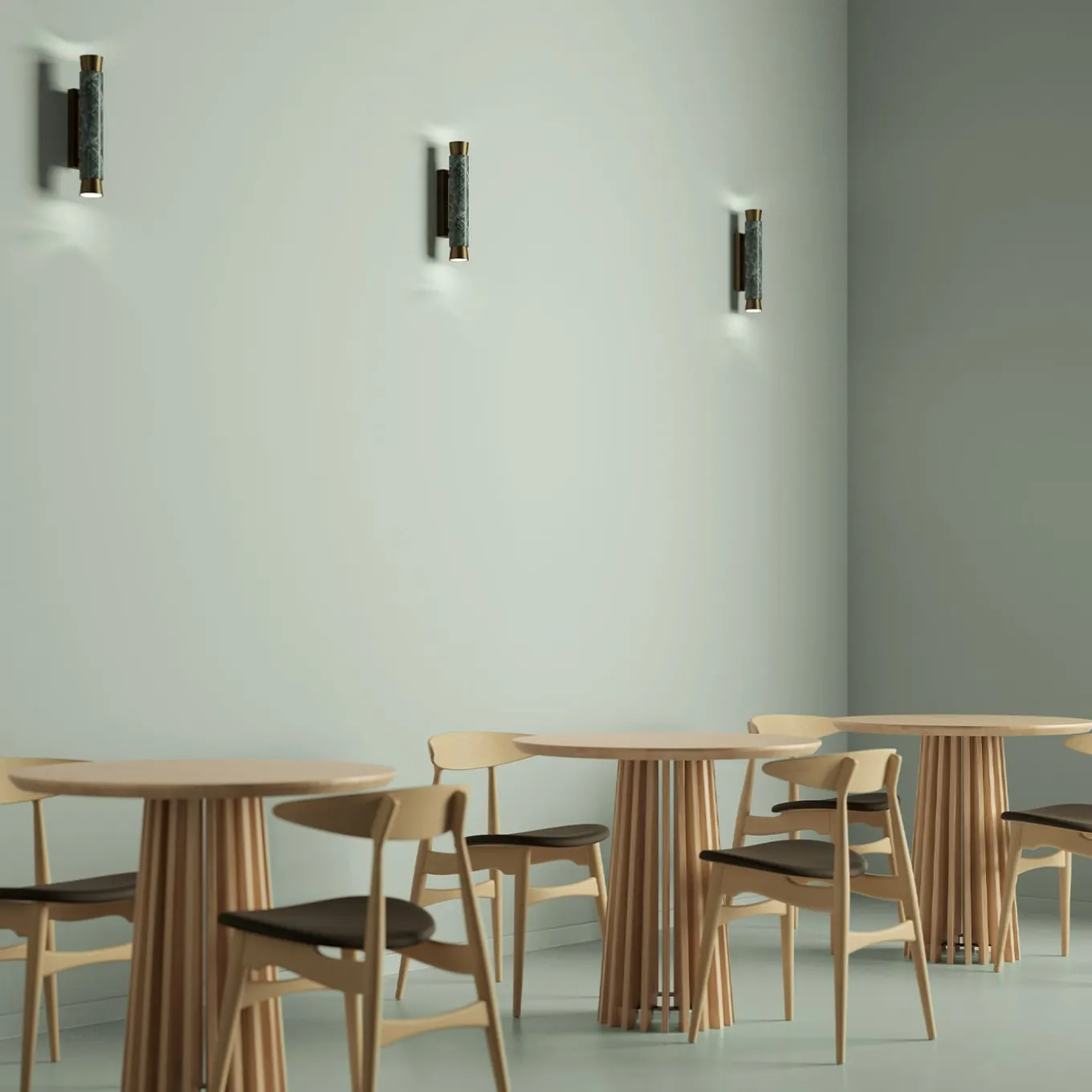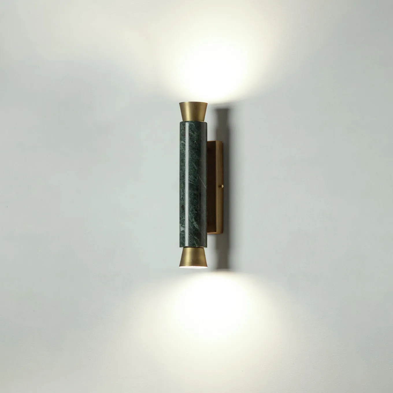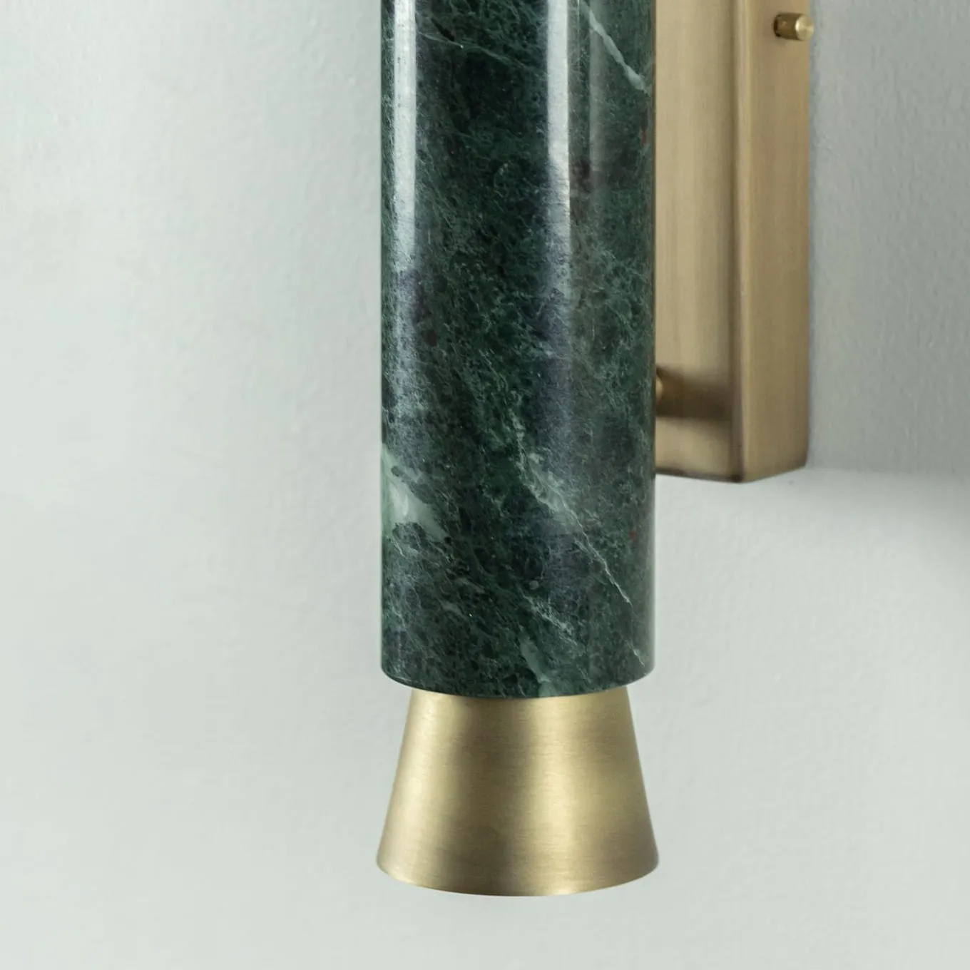 La struttura della lampada da parete Agua è realizzata in ottone bronzato, mentre il corpo è interamente in marmo verde del Guatemala. Una lampada molto elegante, perfetta per illuminare e dare un tocco particolare a un arredamento classico. La lampada da parete Agua misura 8 x 8 x 38 cm. Sorgente luminosa: 2 schede LED 3V, 24 W, 3000 K