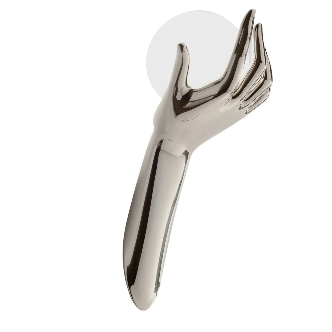 Questa mano illuminata da parete, che attira l’attenzione, è un interessante oggetto di conversazione e aggiunge un affascinante elemento decorativo a qualsiasi arredamento. La forma della mano che stringe una sfera di vetro soffiato opalino (che contiene una singola G9 max 33W – LED 3,5W) è realizzata con la tecnologia della stampa 3D: viene generata una forma in tecnopolimero, successivamente lavorata con stratificazione metallica e infine rifinita con cromatura. Questo pezzo della Human Collection è disponibile anche in altre finiture, per i dettagli chiedere al Concierge. Tensione consigliata: 220-240V o 100-120V.