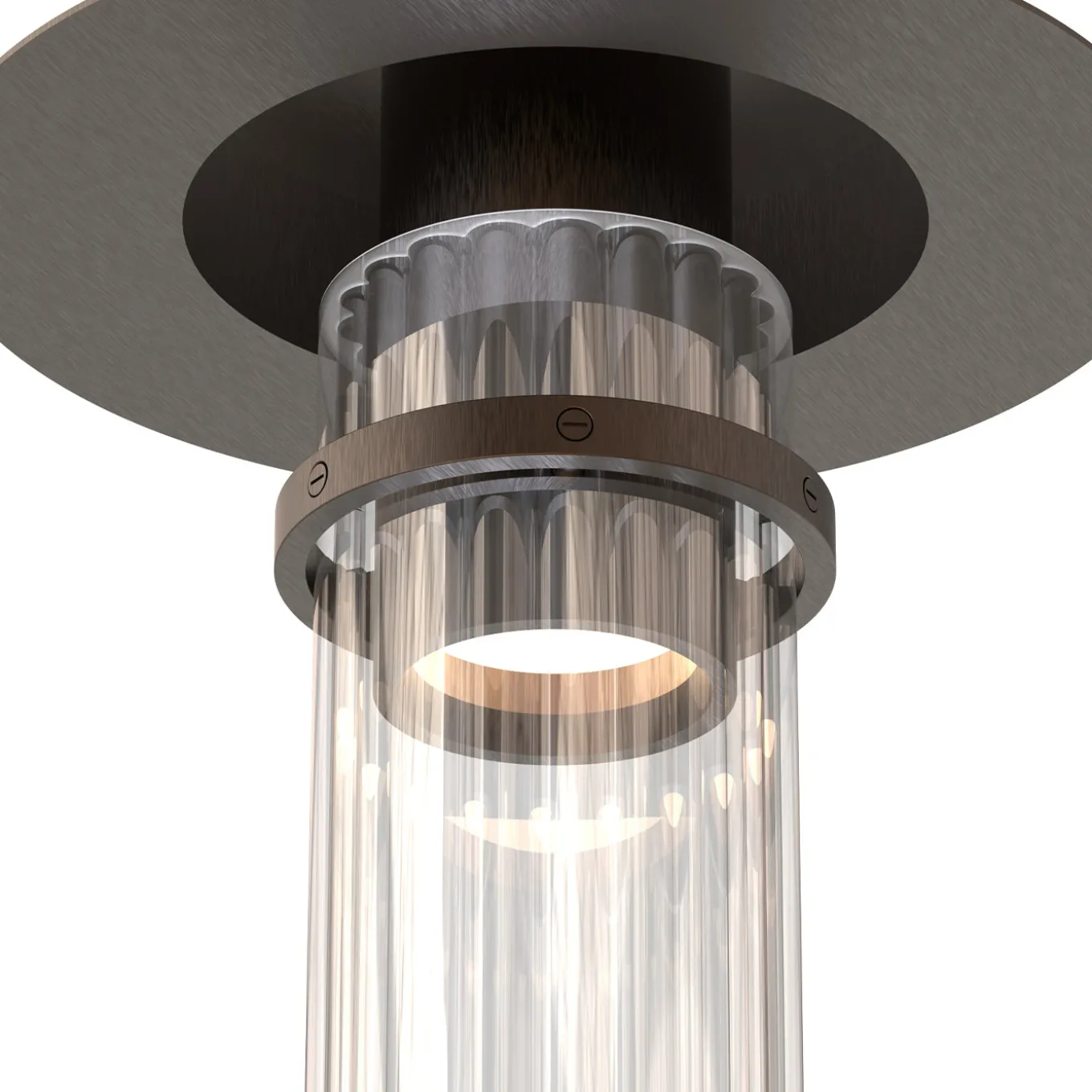 La lampada da soffitto Lei di Studio10 combina vetro rigato cristallino con un portalampada in metallo dorato, offrendo un design raffinato che si ispira a forme femminili e texture delicate. La sua dimensione media e il paralume in vetro cilindrico creano un sottile gioco di luci e ombre, arricchendo gli interni contemporanei con un tocco sofisticato e grazioso. La sua presenza sofisticata e luminosa aggiunge un tocco sottile di lusso e raffinatezza a qualsiasi interno contemporaneo.