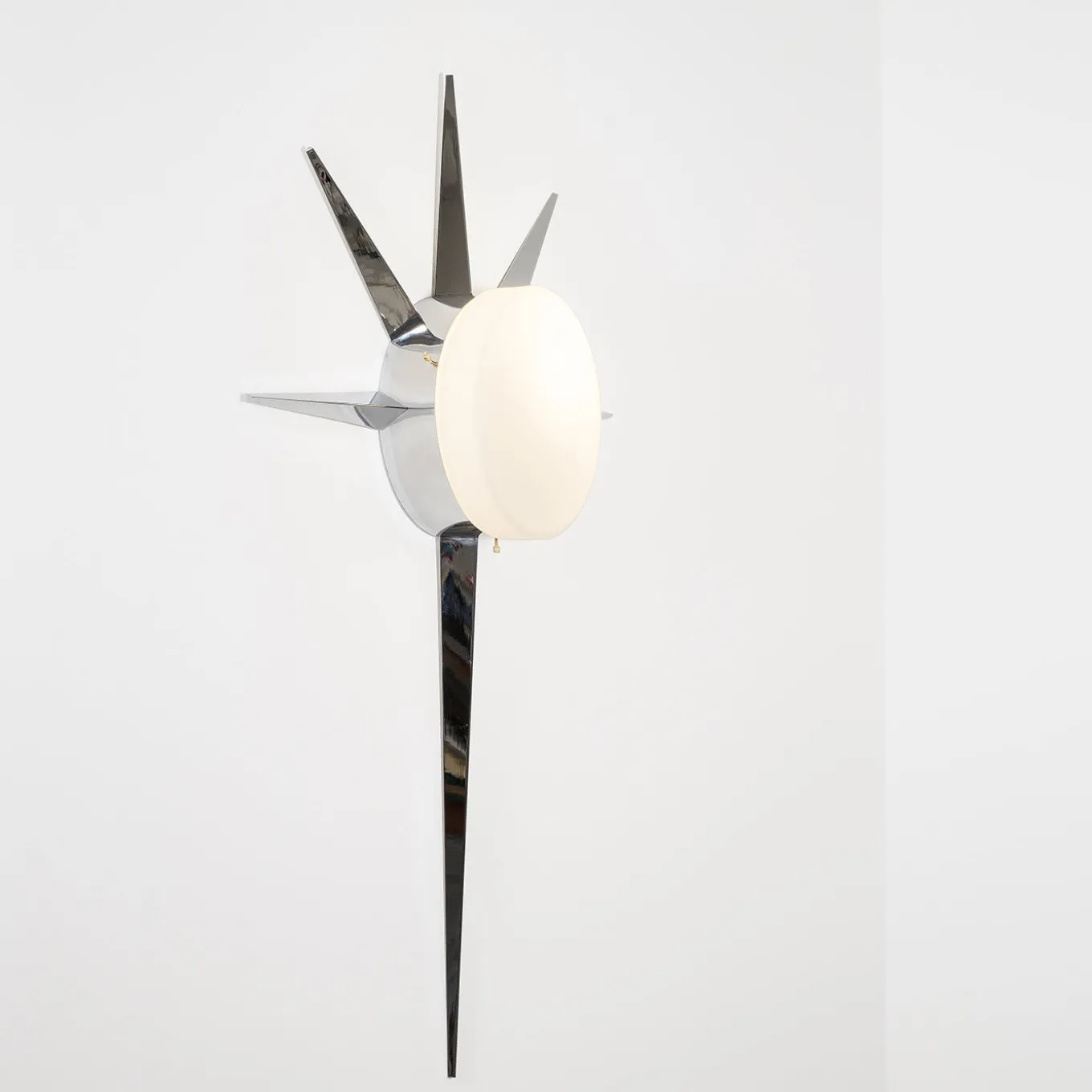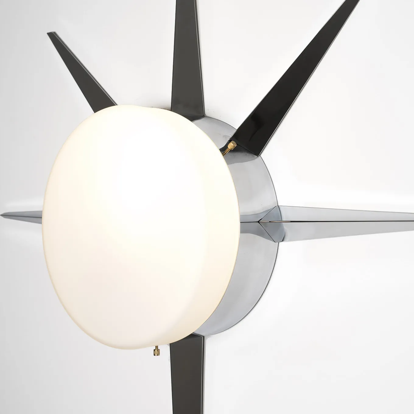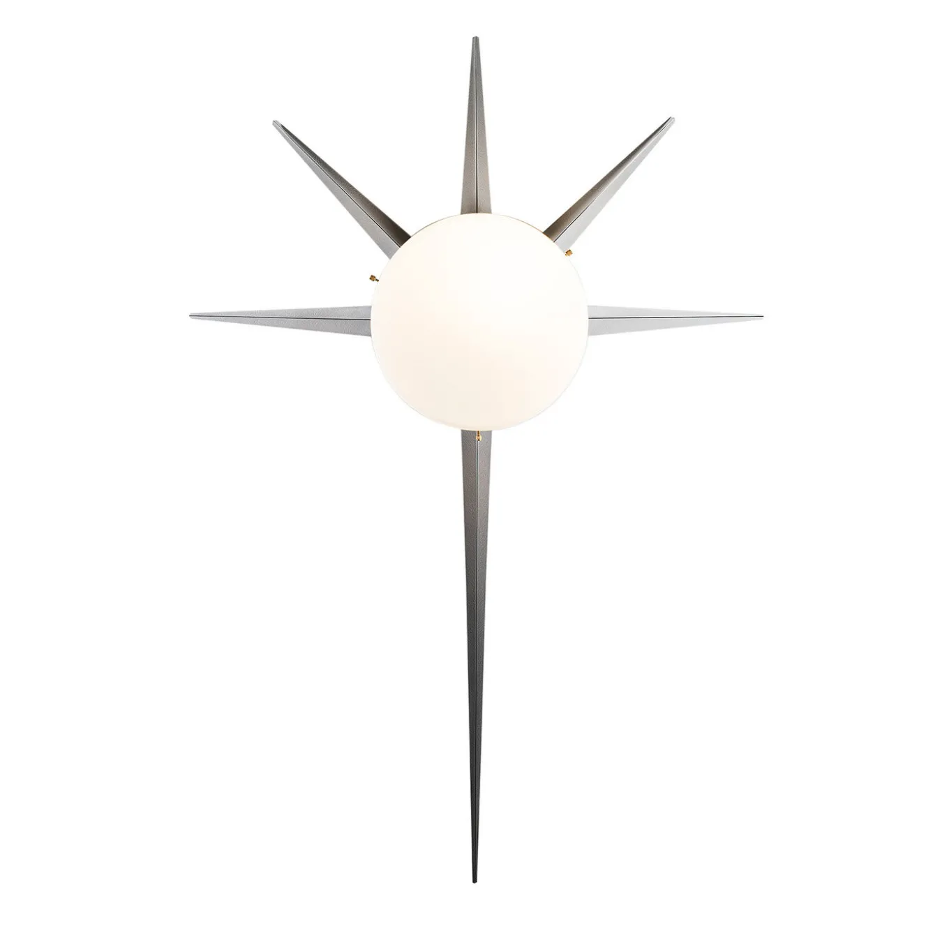 Parte della collezione di illuminazione Solare che rende omaggio al sole, cuore della cultura mediterranea, questa magnifica lampada può essere utilizzata come lampada da parete o da soffitto grazie al suo design versatile e unico. Presenta un paralume centrale opalino luminoso circondato da raggi solari in ottone cromato, disponibili anche in altre finiture. Può essere cablata per il Nord America (110V 60 Hz – lampadine con attacco E26) o per l’Europa (220V 50Hz – lampadine con attacco E27) ed è compatibile con lampadine a incandescenza e LED (non incluse).