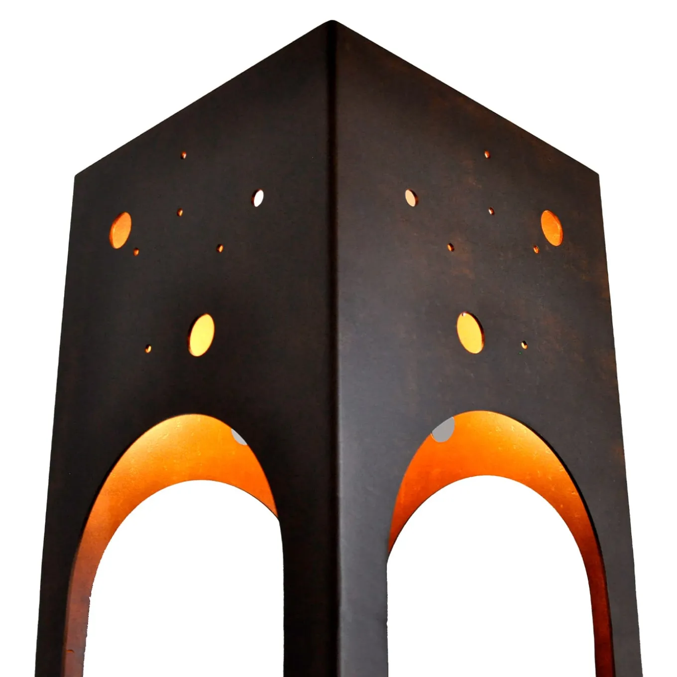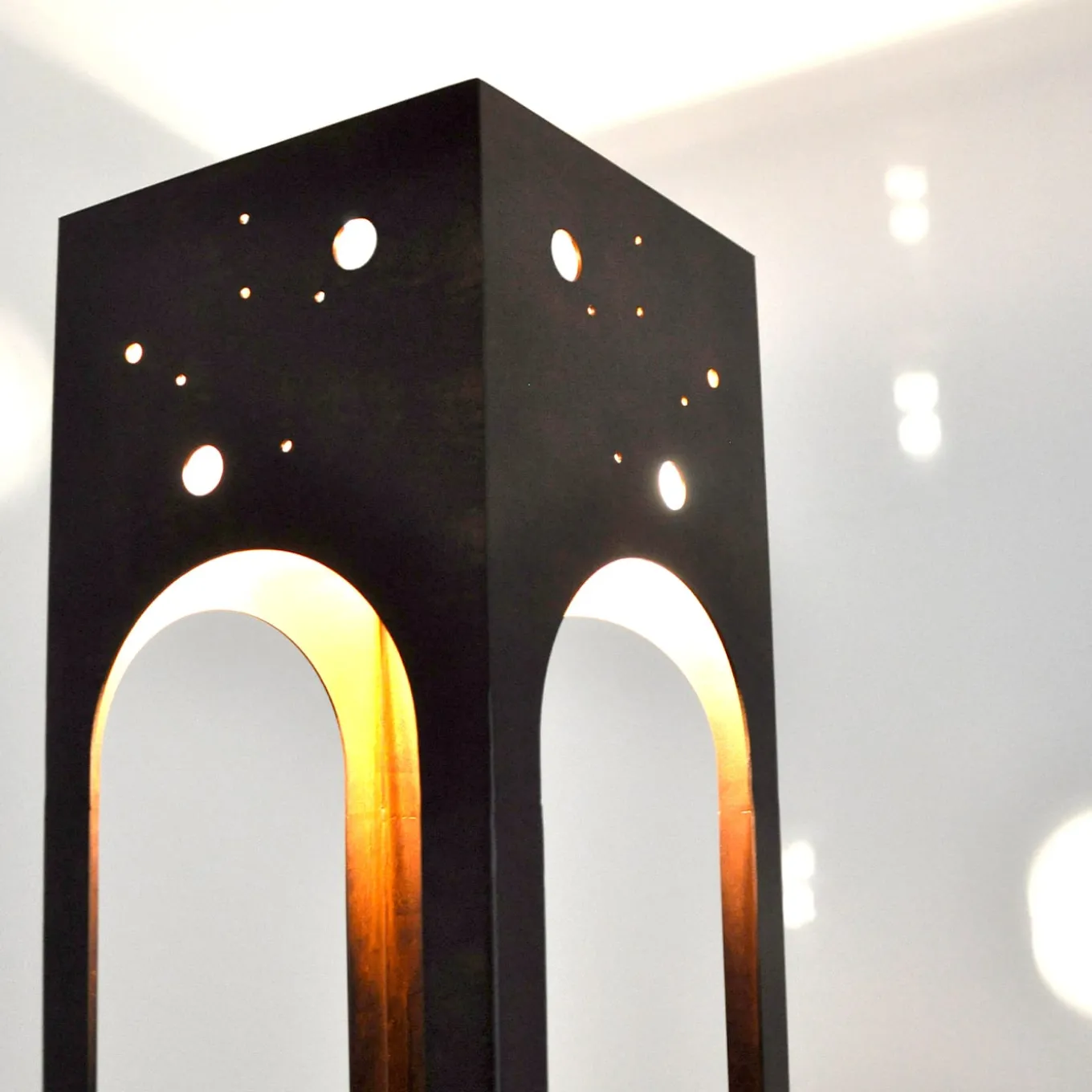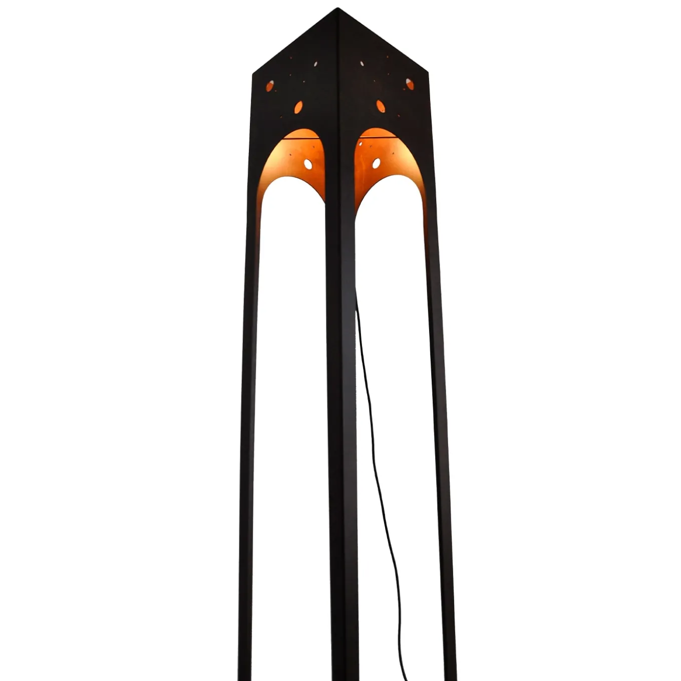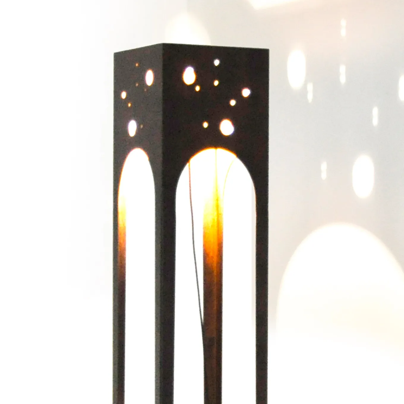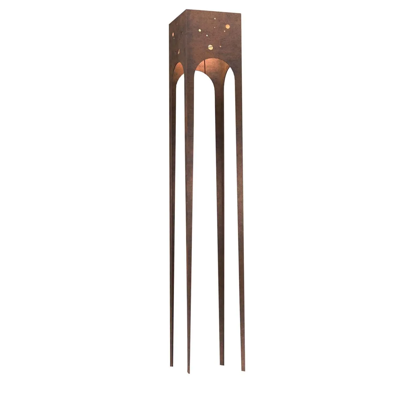 Questa elegante e sottile lampada da terra illumina ogni interno con originalità. Assomiglia a una piccola struttura architettonica in metallo. Le tonalità calde del suo corpo in acciaio esposto agli agenti atmosferici esaltano la funzione della lampada e il carattere iconico dell’oggetto. Il cavo in tessuto colorato è come un cordone ombelicale che porta luce e vita. Prodotto in Italia.
