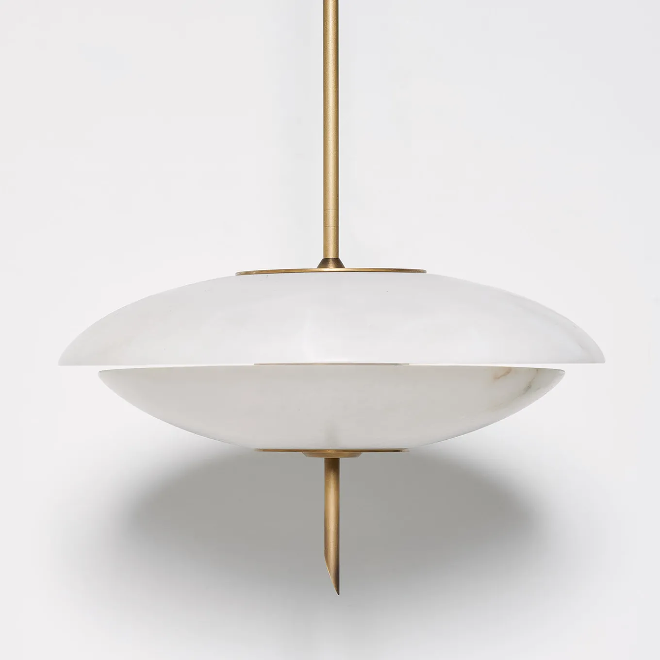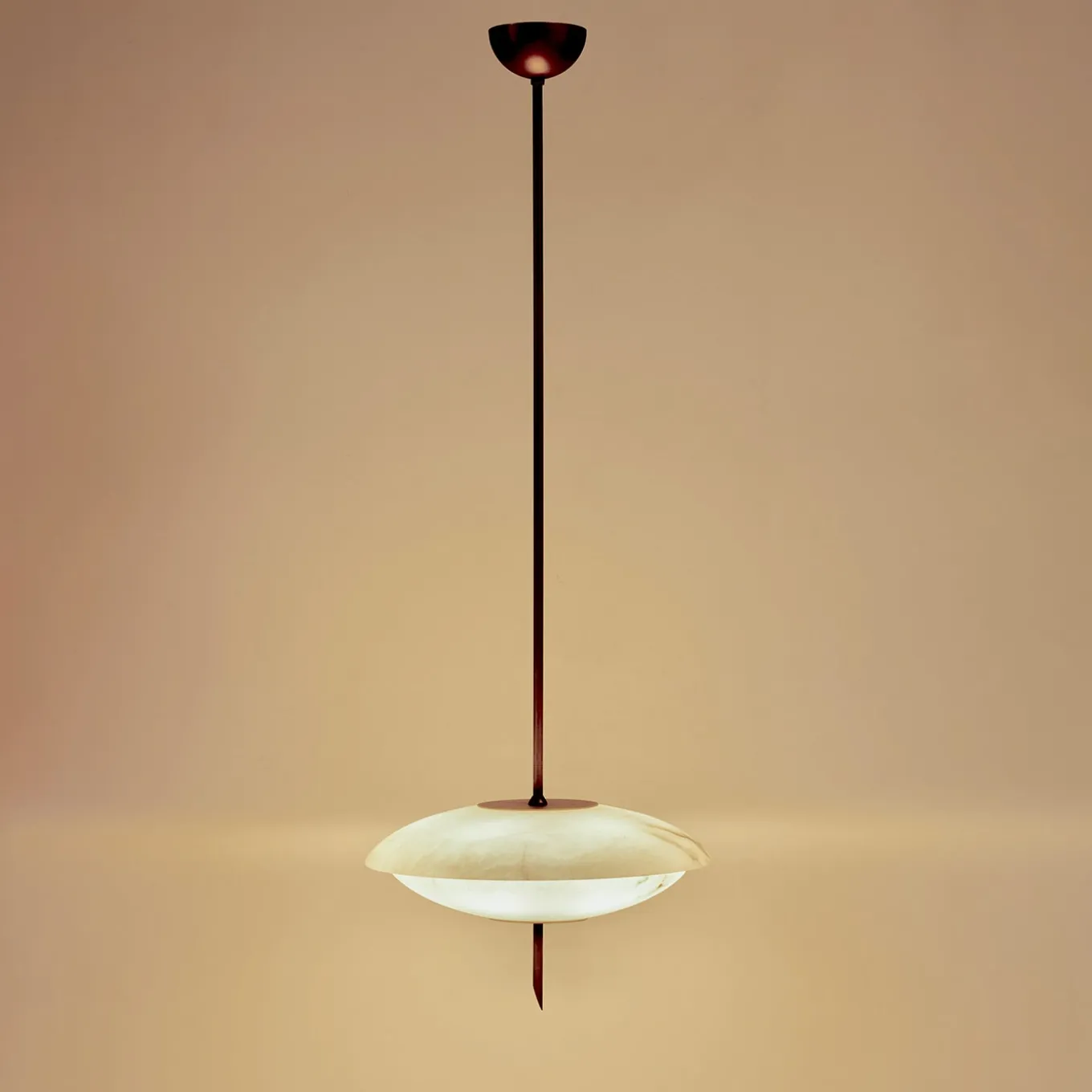 Il lampadario Cosmos si ispira all’estetica elegante degli anni ’50, incarnando lo spirito pionieristico dell’era spaziale. Le sue piastre convesse in alabastro diffondono dolcemente una luce calda, creando un’atmosfera invitante in qualsiasi spazio. La struttura in ottone spazzolato aggiunge calore e raffinatezza, esaltando la bellezza naturale dell’alabastro. Un elemento di spicco è l’esclusivo terminale in ottone tagliato a “fetta di salame”, che aggiunge carattere ed eleganza.