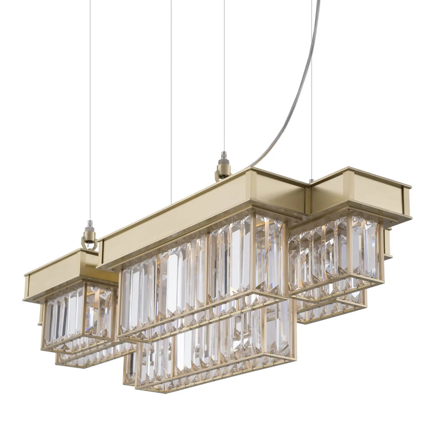 Cristalli e cromature sono combinati insieme per dare risalto a un sistema geometrico e complesso, composto da elementi modulari. La lampada Gisele offre molteplici declinazioni, come una coreografia di corpi nello spazio. Un design innovativo ispirato all’art dèco, che unisce le nuove tecnologie a ragioni estetiche: l’intera struttura è realizzata in acciaio con taglio laser e le luci sono a led dimmerabili. Lampadario a led, stick led 24VDC – 36W, 3000°K in dotazione, dimmer wifi incluso.