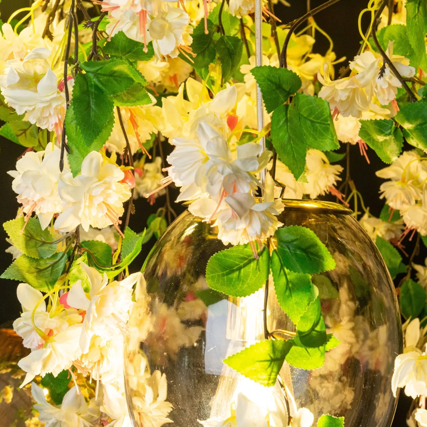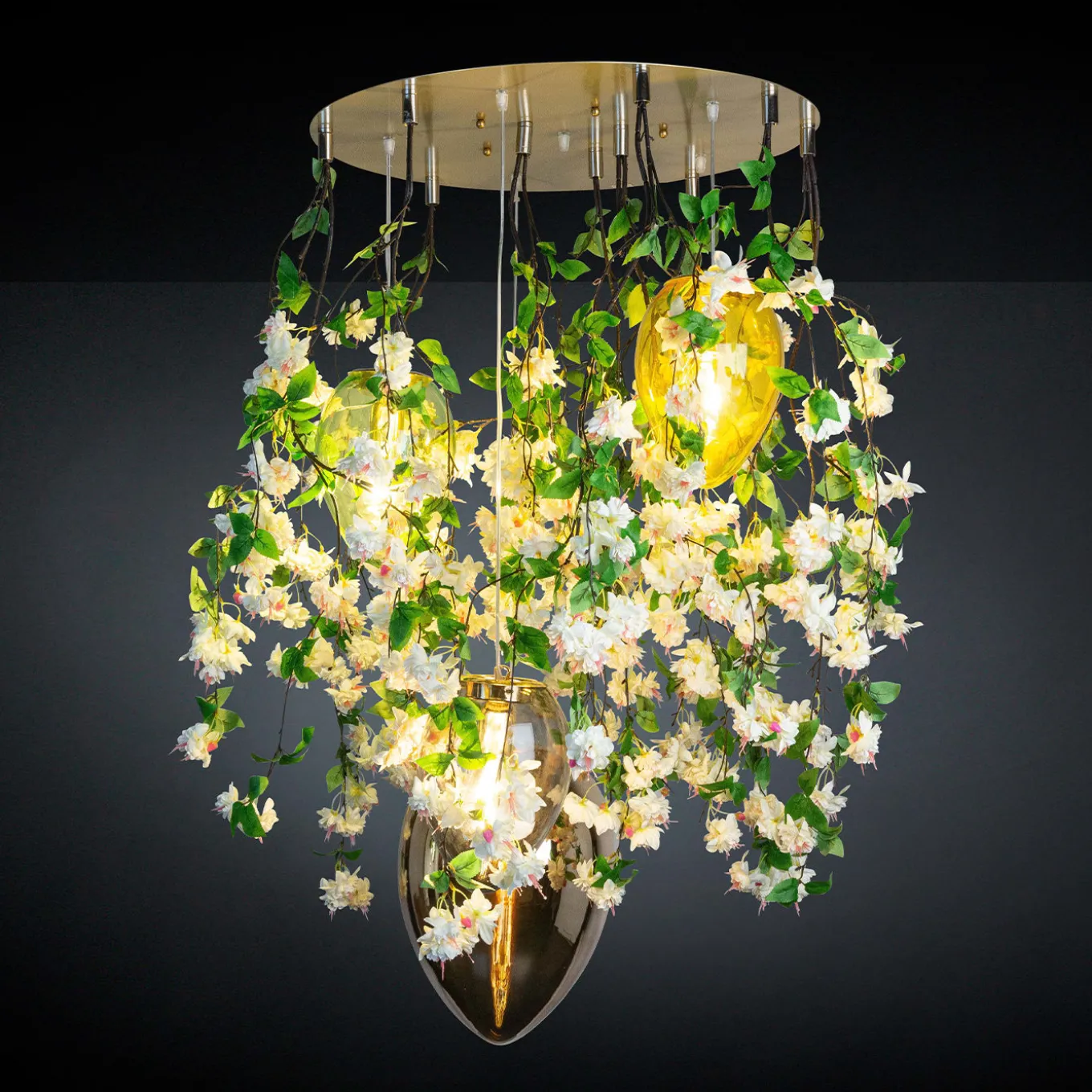 Flower Power è una straordinaria collezione di lampade da soffitto di VGnewtrend, perfetta per interni privati e contract. Con quattro lampadine E27 max 8W, presenta paralumi a uovo in cristallo circondati da un’ipnotica cascata di fiori sintetici bianchi. Questo pezzo arricchirà un ingresso o un soggiorno con una raffinatezza senza pari.