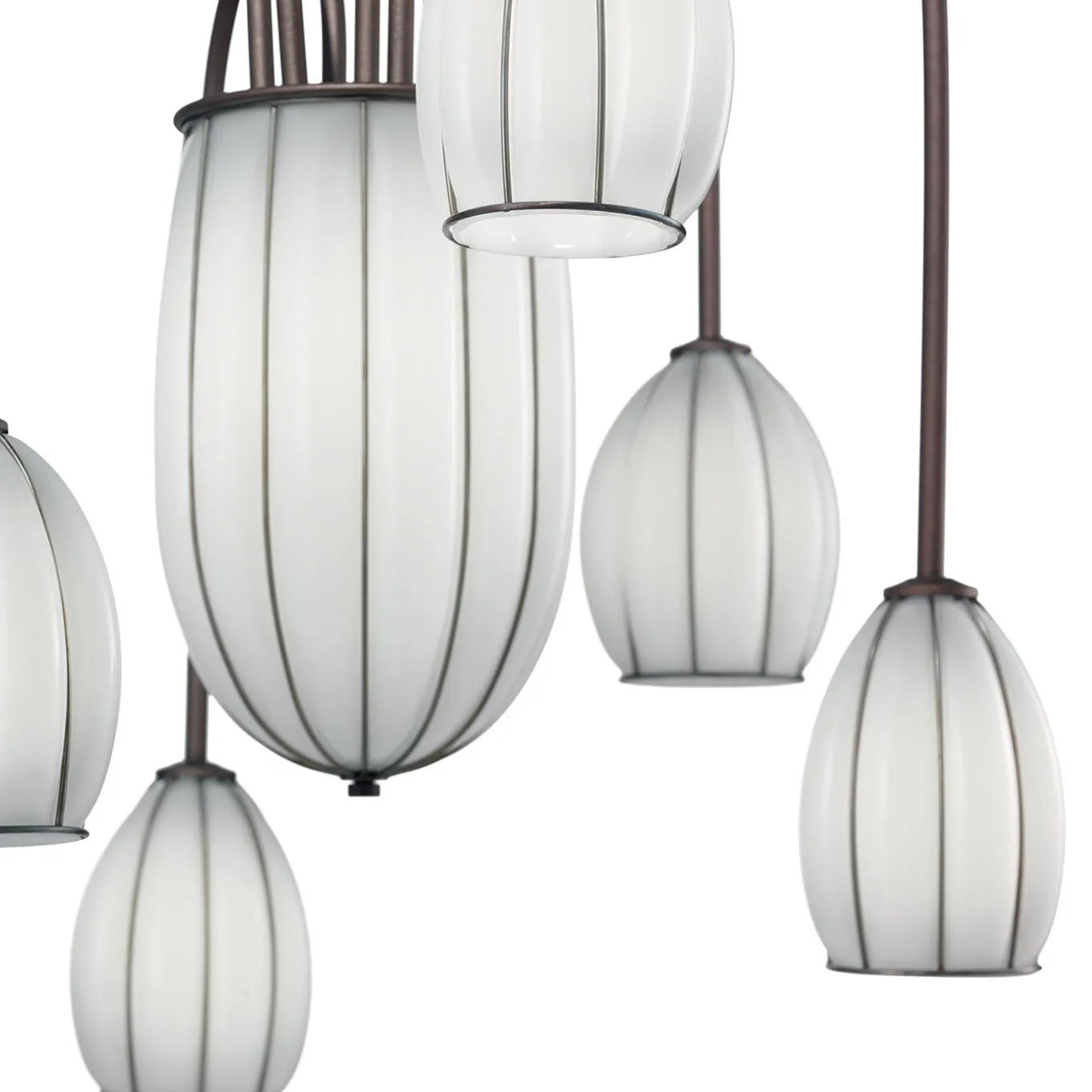 Parte della collezione Salice, questo lampadario può essere utilizzato da solo per illuminare una stanza, arricchendola con il suo stile moderno e la sua silhouette sorprendente, oppure può essere abbinato ad altri articoli della stessa collezione, per un effetto più dinamico. I sei bracci in acciaio bronzato assomigliano a rami di un salice piangente e ognuno sostiene una delicata sfumatura nello stesso materiale che racchiude le sfumature in vetro di Murano soffiato a bocca, rivestite di bianco. Le otto lampadine sono E14 max 60W. Certificazioni per contratti e commerciali disponibili su richiesta. A causa della natura artigianale del processo, potrebbero verificarsi lievi variazioni. La finitura del metallo e la tonalità del vetro possono differire da pezzo a pezzo, esaltando l’unicità di ogni creazione.