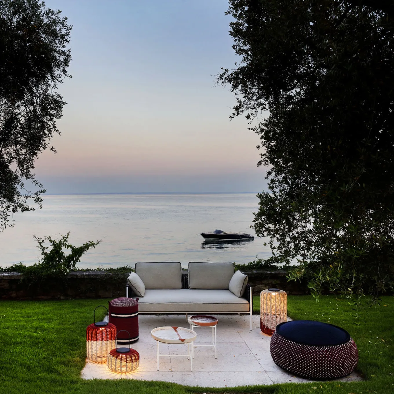 La lanterna Susy è una luce LED versatile e portatile (6000mAh – 5,8 W – 3000K) progettata per l’uso sia in interni che in esterni. Il LED, nascosto alla vista, si attacca e si stacca facilmente grazie a un sistema magnetico e può essere ricaricato con un cavo USB. Decorata nei colori beige, rubino e zaffiro tipici di Antonio Marras, la lanterna è dotata di corde in filo Olyna™ e di una struttura in alluminio con maniglia per un facile trasporto. Disponibile in tre misure (∅36×82 cm, ∅36×62 cm, ∅36×42 cm).