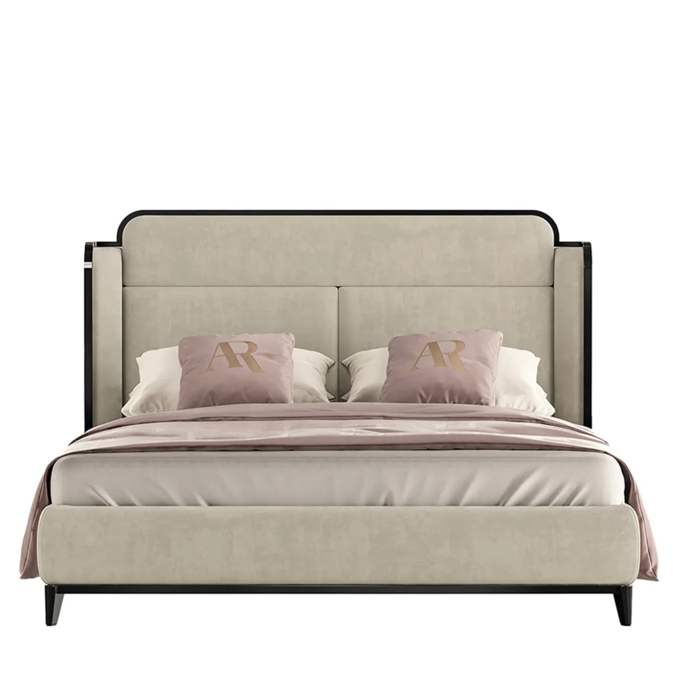 Brillante combinazione di comfort e stile, questo letto presenta un design elegante e raffinato, realizzato a mano con materiali di prima qualità, per offrire un’esperienza di riposo eccezionale. Morbidamente imbottito, è rivestito in tessuto beige e presenta una struttura in legno nero lucido. Materasso, coperte e cuscini non sono inclusi. Per ulteriori dettagli, contattare il Concierge.