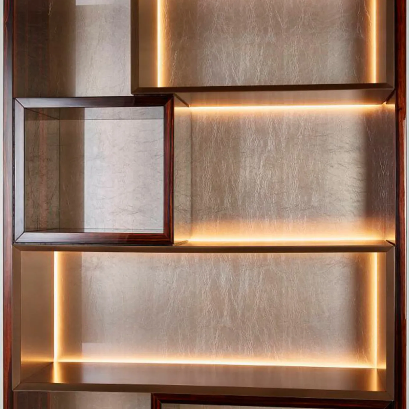 Questa libreria reinterpreta la forma geometrica più pura: il cubo. Una tridimensionalità semplice e monocromatica che presenta tutte le possibili combinazioni di cubi e quadrati aperti e chiusi.