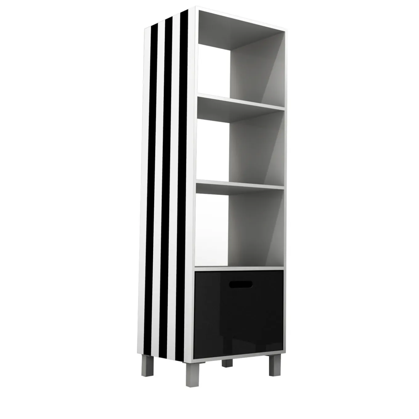 Parte della collezione di mobili Simbolo, personalizzabile con l’aggiunta di testi e dettagli decorativi che riflettono il gusto del cliente, questa libreria alta è realizzata in alluminio e presenta una struttura alta e rettangolare con due ripiani e un profondo cassetto inferiore. La struttura bianca è completata da pannelli laterali a righe bianche e nere e da un cassetto nero. Questo pezzo offre una soluzione d’arredo creativa per la casa come mobile curio o per l’ufficio come libreria combinata e unità di archiviazione, offrendo un design funzionale elegante, unico e distintivo in qualsiasi arredamento.