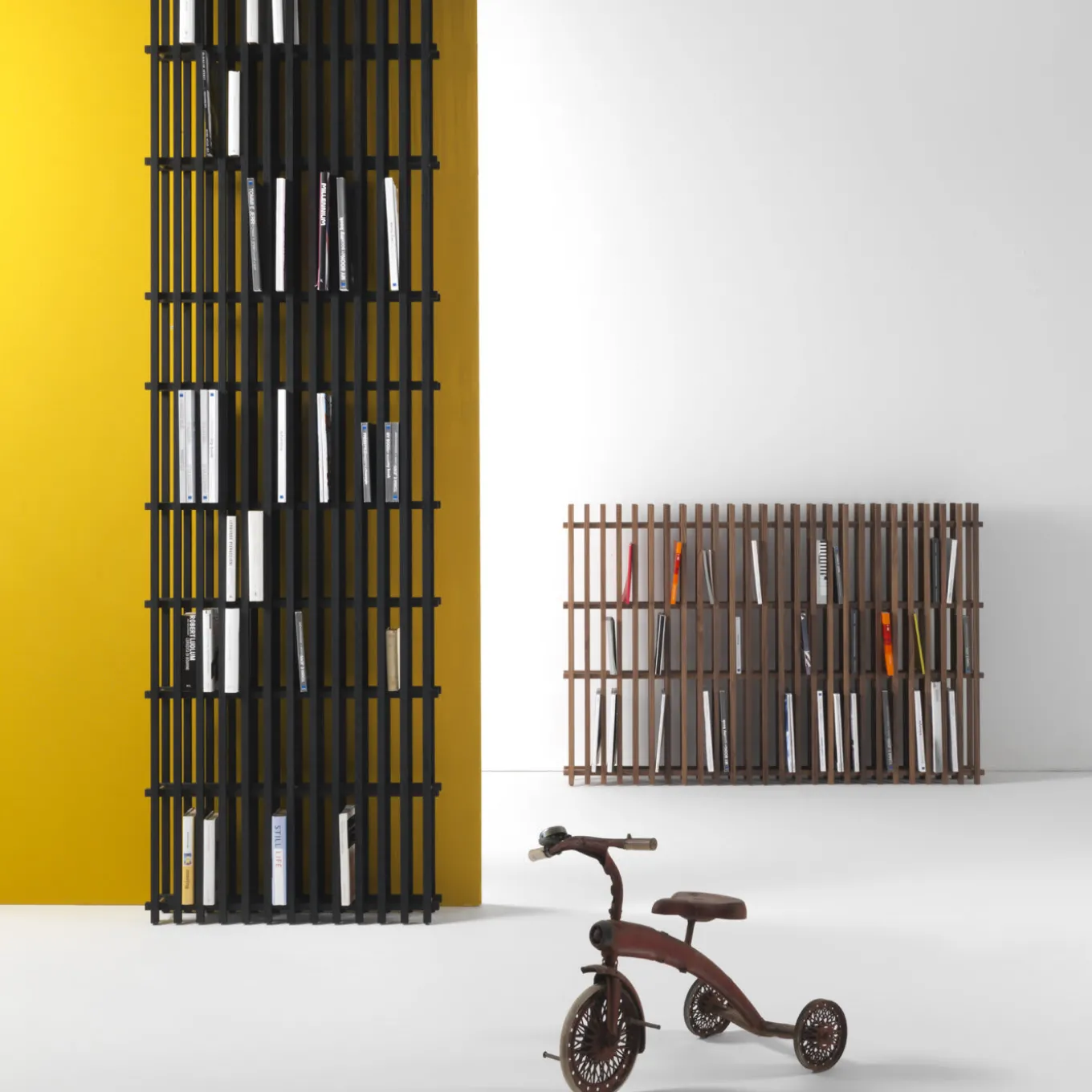Minimalista e sofisticata, questa libreria può essere collocata direttamente a parete o al centro di una stanza come divisorio. La sua silhouette leggera e la sua squisita fattura ne fanno un pezzo d’arredo funzionale che ricorda la facciata di un edificio, una boiserie tridimensionale. Interamente realizzato in noce canaletto, questo pezzo è composto da due pannelli verticali che incorniciano quattro ripiani orizzontali. La sua forma versatile può avere diverse altezze e può essere realizzata anche in rovere durmast naturale o rovere verniciato nero. Si prega di consultare il concierge per eventuali variazioni di prezzo per la personalizzazione.