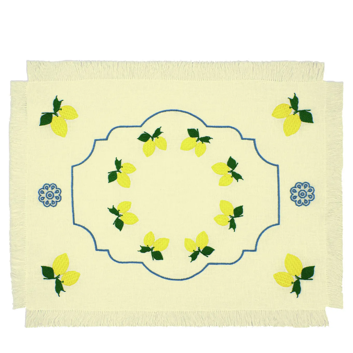 Questo splendido set di due tovagliette con frange in lino giallo certificato Masters of Linen porta il fascino dei profumati limoneti direttamente in tavola. Ricamato minuziosamente a mano in pregiato cotone Mako, il motivo dei limoni è stato realizzato minuziosamente nel corso di diverse ore, riflettendo l’esperienza degli abili artigiani che lo hanno realizzato. Si prega di esplorare altre opzioni di colore nel catalogo Artemest.