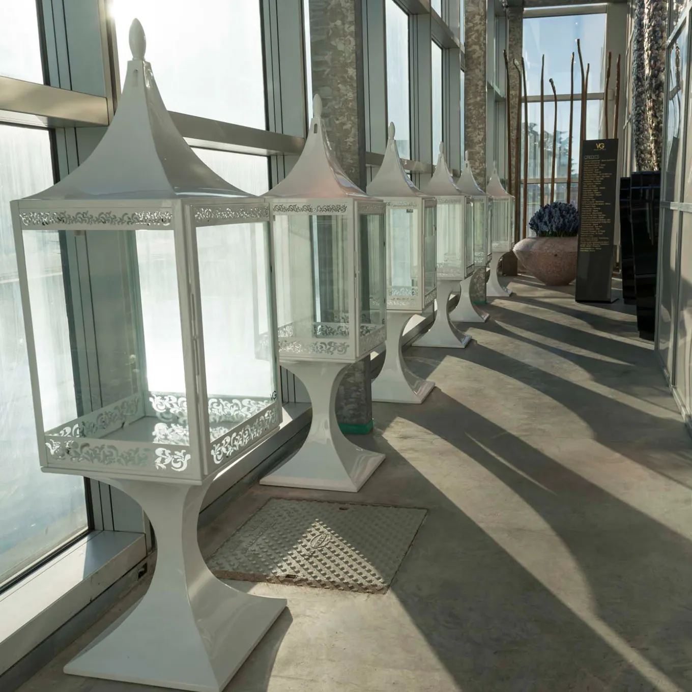 Singolare pezzo di arredamento funzionale, questa lanterna infonderà una sottile raffinatezza in un ambiente interno o esterno moderno. Interamente realizzata in acciaio laccato bianco lucido, poggia su un alto stelo ed è ornata da una delicata decorazione floreale di forte valore visivo e materico.