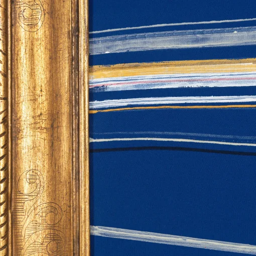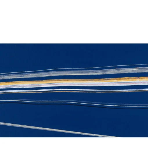 Questo dipinto in acrilico, che fa parte di una serie 2020 realizzata con Lumen, è un’opera di grande effetto, in grado di elevare qualsiasi interno moderno con una raffinatezza ineguagliabile. Ispirato al mondo naturale, il dipinto vanta vibranti linee orizzontali che irrompono su un tranquillo sfondo blu. Racchiusa in una cornice dorata, l’opera misura 26,5 x 51 cm (senza cornice). Tra le doti di questo artista ci sono un’eleganza e una sorridente vaghezza che rappresentano un tipo di aristocratico distacco dalla cultura museografica stessa e dalle astrazioni retoriche della ricerca informale.
