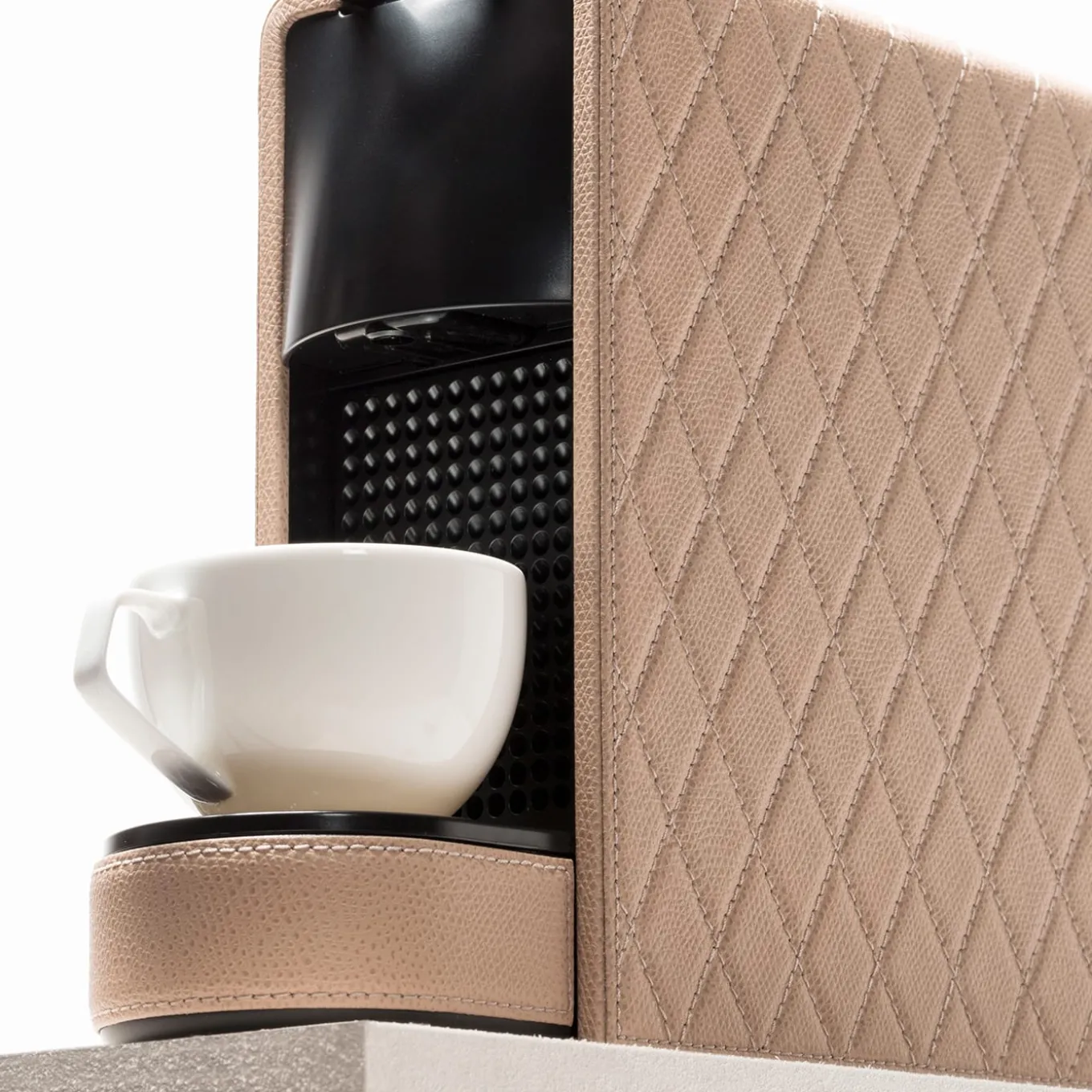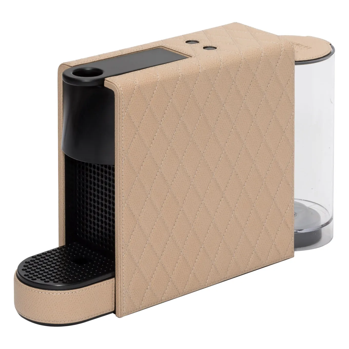 Originale macchina Nespresso rilegata in pelle con motivo di trapunta a rombi. Utilizza le classiche capsule Nespresso. Voltaggio disponibile: 220V.