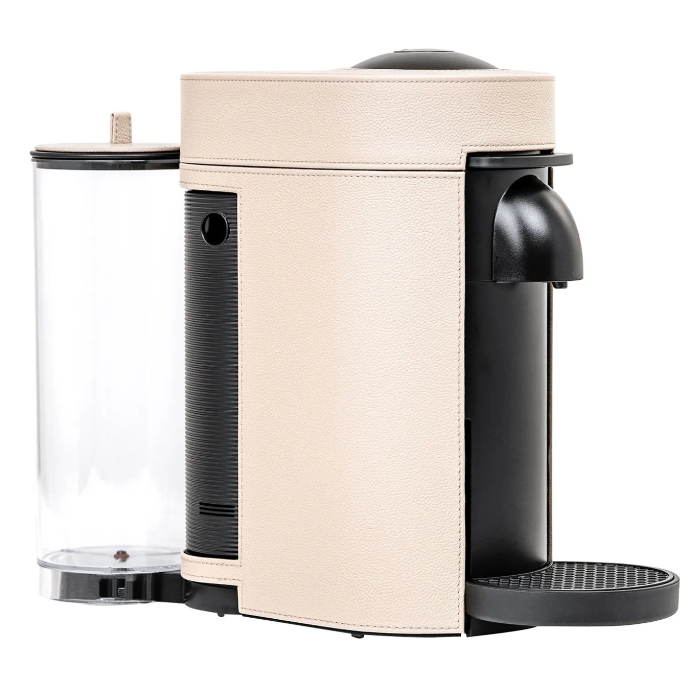 La macchina da caffè Vertuo Plus presenta un raffinato rivestimento in pelle color crema che valorizza il classico design Nespresso con una pregiata finitura in pelle di vitello italiana. Questa macchina combina tecnologia di estrazione avanzata ed estetica di alto livello per offrire un’esperienza di caffè superiore.
