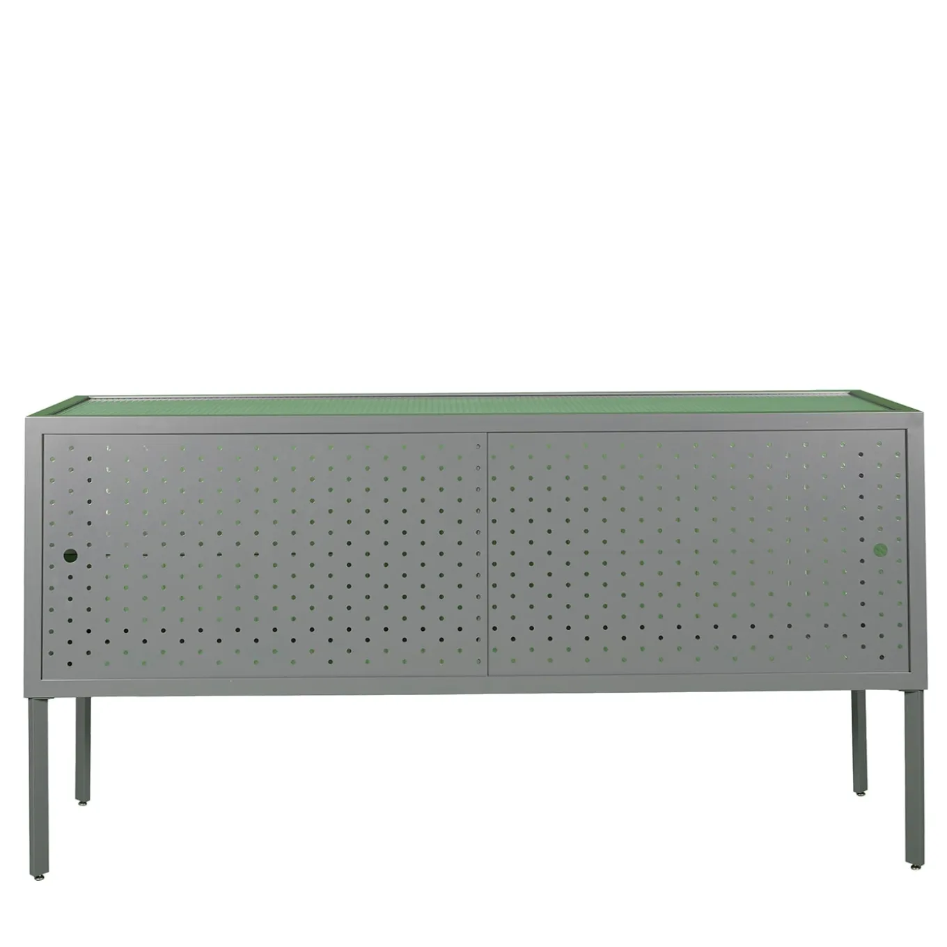 La credenza Maia è caratterizzata da un design minimalista con un’estetica razionalista, ideale per gli interni contemporanei. La sua struttura metallica, presentata in finitura grigia, è definita da ante forate che forniscono sia ventilazione che profondità visiva. Il pannello superiore è realizzato in policarbonato trasparente, disponibile anche nella versione fumé, che offre resistenza mantenendo un aspetto raffinato. Progettato da Michele Giacopini & MM Company. La versione sabbia è disponibile nel catalogo Artemest, con ulteriori opzioni di colore su richiesta. Per ulteriori informazioni, contattare il Concierge.