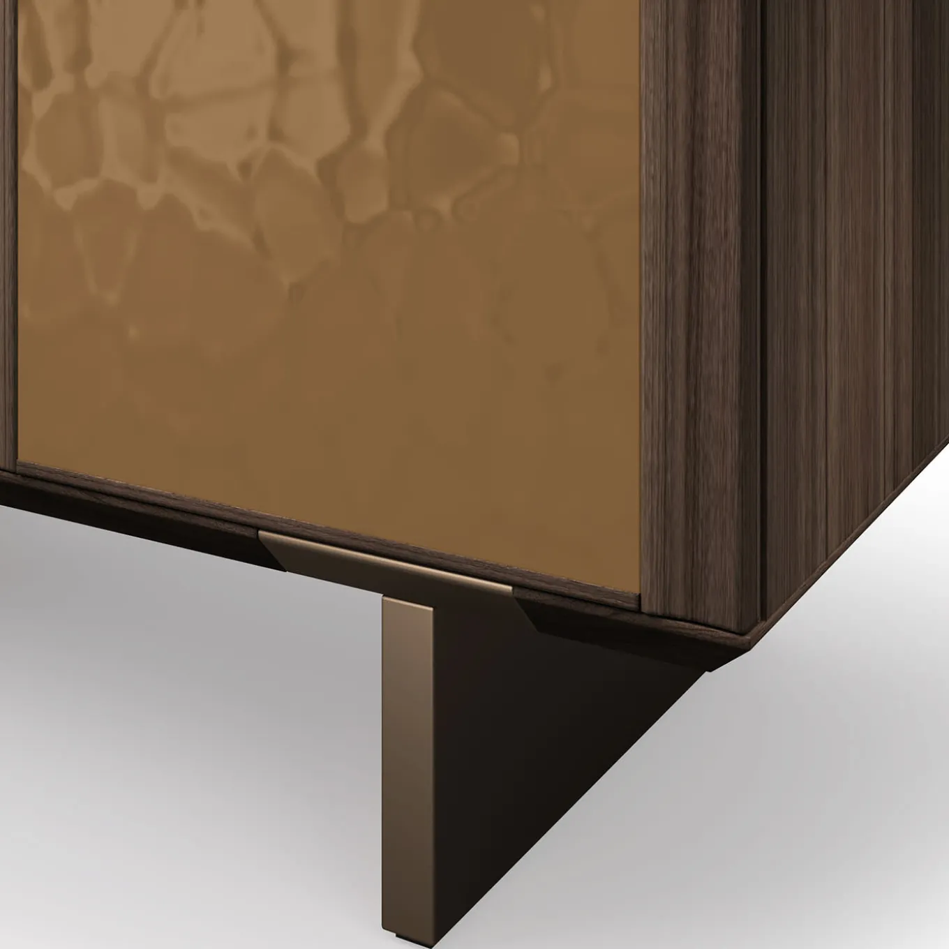 La Madia Solferino è un mobile di design che unisce estetica e funzionalità. Il pannello in metallo liquido bronzo 3D crea un gioco di luci dinamico. La struttura in noce canaletto brunito offre un elegante contrasto. I dettagli dorati aggiungono lusso. I ripiani in vetro e l’illuminazione a LED valorizzano gli oggetti esposti. Ideale per chi cerca un mobile di design raffinato e funzionale.