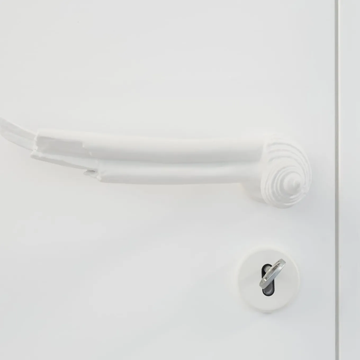 Con la forma inaspettata di una rara conchiglia trovata sulla riva del mare, questa magnifica maniglia per porta è il pezzo perfetto per elevare un interno contemporaneo e sobrio di una casa al mare. Realizzata in ottone con una finitura bianca versatile e senza tempo, appartiene alla serie Conchiglia disegnata da Nicole Valenti.