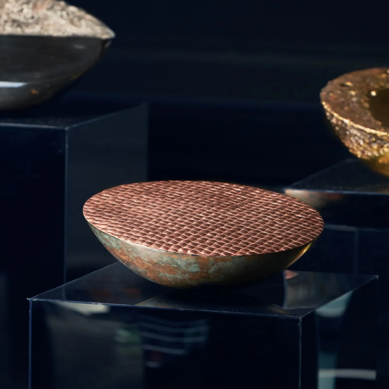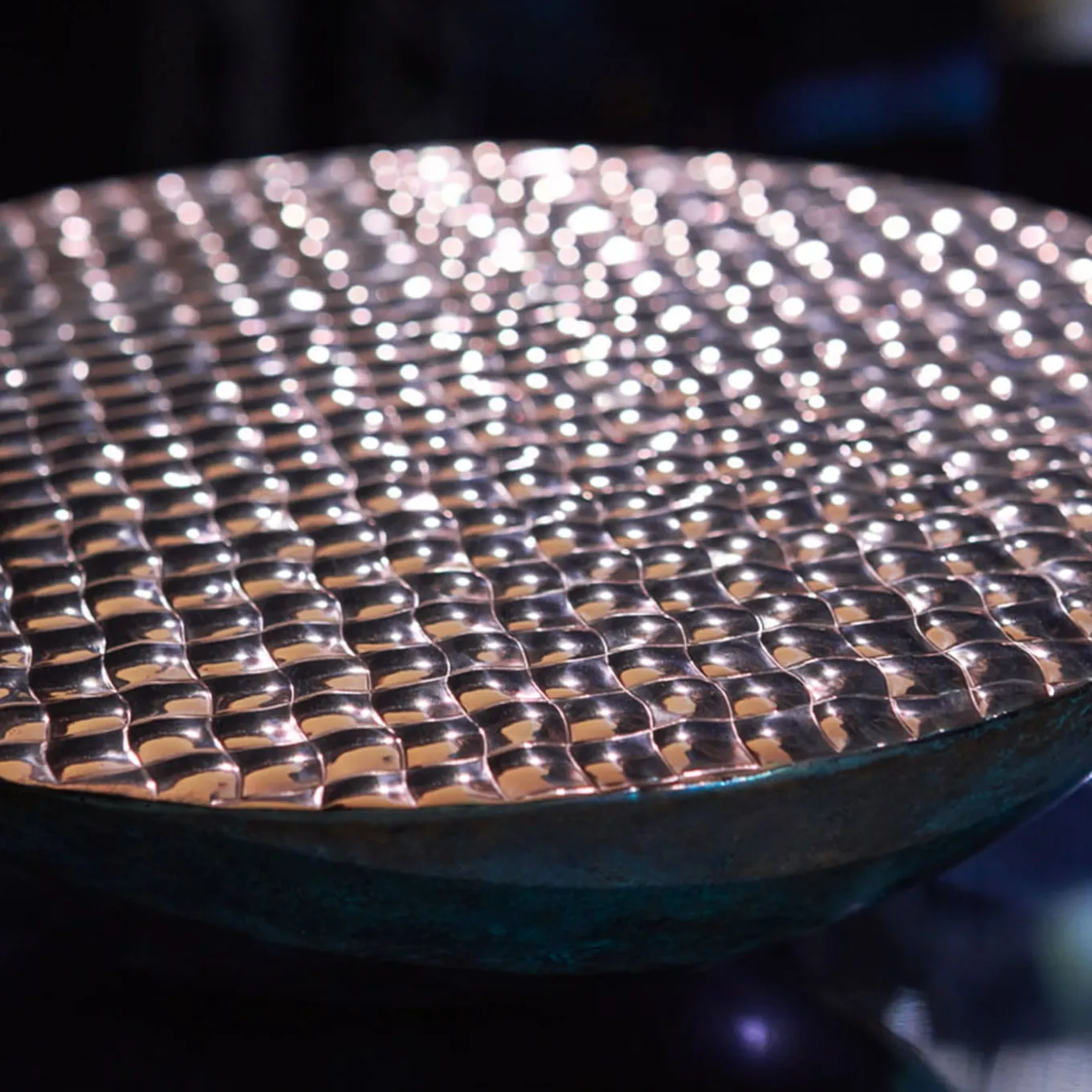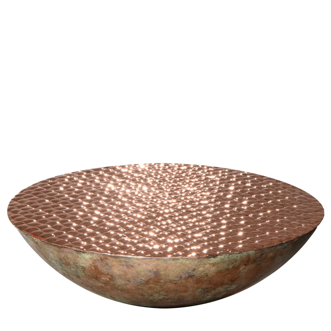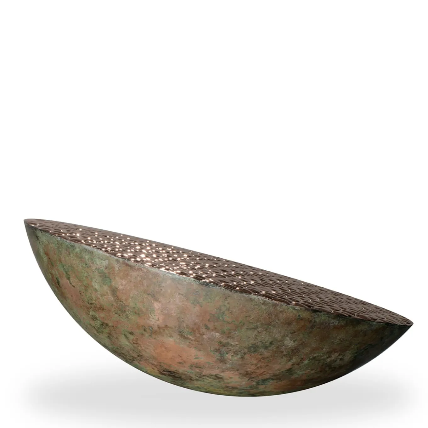 Il metallo puro rivelato nel suo seducente potenziale decorativo definisce il design intrigante di questa scultura semisferica, un pezzo unico che fa parte di una serie limitata di nove pezzi firmati, numerati e certificati. Realizzata in rame, questa scultura è definita dall’interazione tra l’esterno grezzo e la parte superiore liscia e scintillante, finemente cesellata per ricordare le onde convergenti e divergenti che si increspano sul mare baciato dal tramonto.